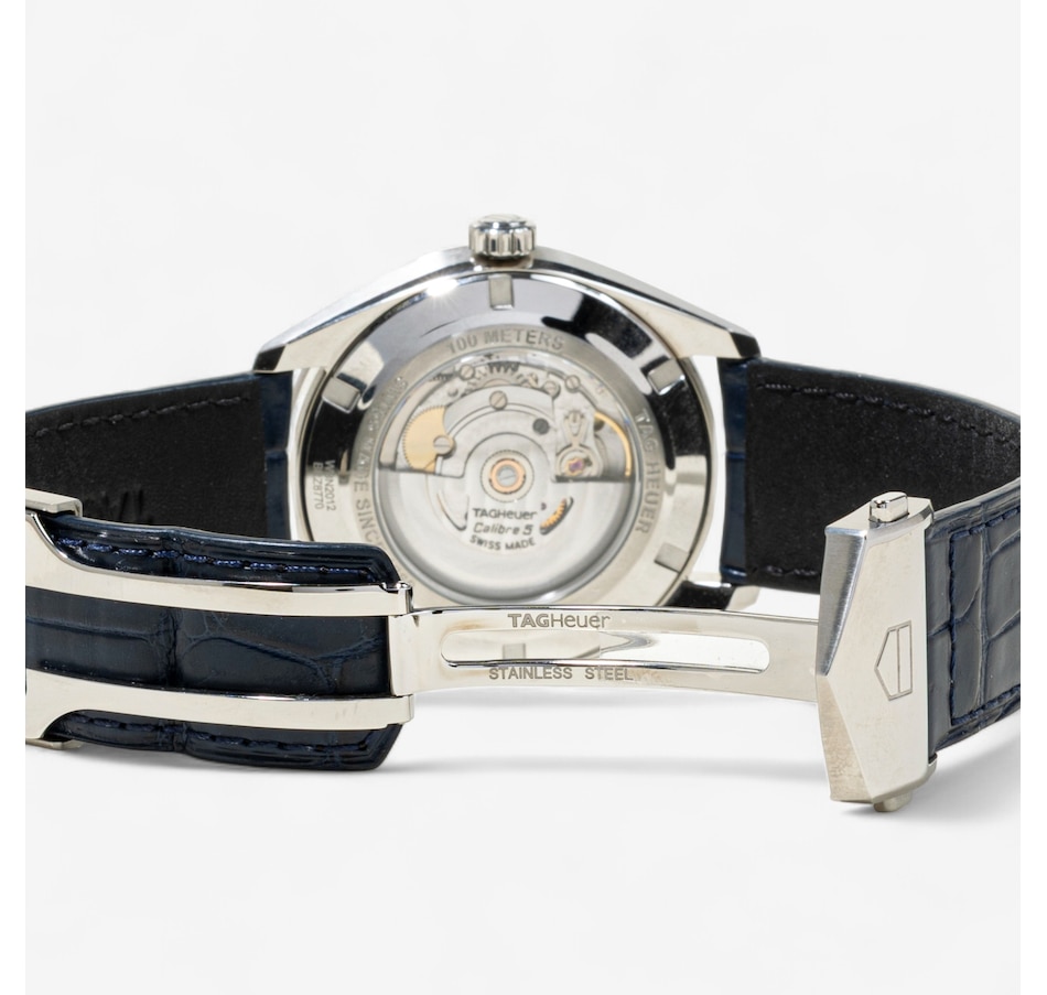 Bold yet refined, this Tag Heuer Carrera Calibre 5 timepiece embodies the brand’s signature blend of precision engineering and timeless design. Crafted in durable stainless steel, the watch features a case with clean lines and a polished finish, offering a versatile size suitable for both professional and casual wear. Powered by the Swiss Made Calibre 5 automatic movement, this watch delivers reliable, self-winding performance visible through the exhibition case back, which allows a glimpse into the mechanical heart of the watch.