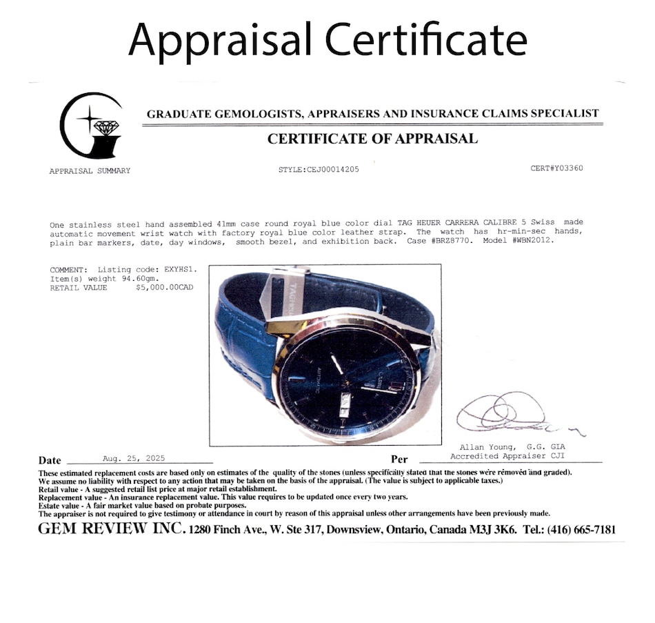 Founded in 1860 by Edouard Heuer in St-Imier, Switzerland, TAG Heuer is a pioneer in watchmaking innovation, known for its precision chronographs, racing-inspired designs, and commitment to craftsmanship. The Carrera line, introduced in 1963, pays homage to the legendary Carrera Panamericana auto race and remains one of the brand’s most iconic collections. With a legacy rooted in motorsport and Swiss excellence, TAG Heuer continues to push the boundaries of performance and style. This Carrera Calibre 5 is a sophisticated expression of that legacy, perfect for those who appreciate both tradition and innovation in a luxury timepiece.