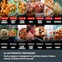 • 14-in-1 cooking programs are included, from air fry functions like Crispy Meal to Steam and Crisp (juicy inside, crunchy outside), Grill, Bake/Roast, Bread, and Dehydrate; multicooker modes include Risotto, Pasta, Saute, Slow Cook, Steam, Yogurt, and Reheat