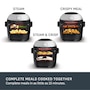 • The multi-layer tray lets you cook proteins, grains, and veggies simultaneously (think salmon and risotto, done together!).