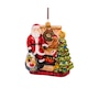 Santa Claus is taking a well-deserved break by a crackling fireplace while the snow falls outside. With his cheerful smile and twinkling eyes, he's holding a bulging sack of gifts next to a mantle adorned with stockings and a wreath. The artistry on this ornament is phenomenal, from the individual painted fireplace bricks to the brilliant shimmer of the colourful Christmas tree.