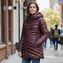 • Fabric: (shell) high density 100% nylon; (lining) 100% polyester; (filling) eco down polyester