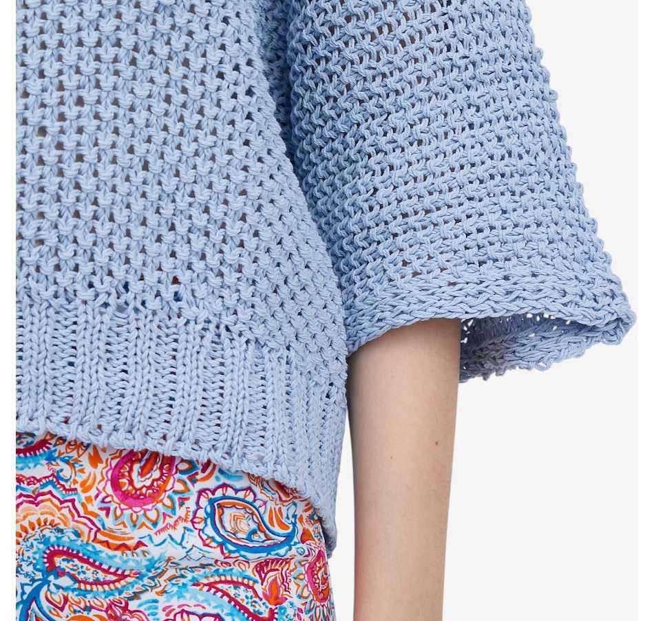 Embrace sunny‑day style with the Meadow’s round neck cropped crochet sweater, the ideal lightweight layer for warm, breezy days. This easy‑to‑wear knit blends airy breathability with bright, bold colours and a playful crochet design that instantly elevates your look. The cropped silhouette offers just‑right coverage, creating an effortless, relaxed vibe that’s ideal for beach strolls, patio brunches, and every sunny adventure in between.
