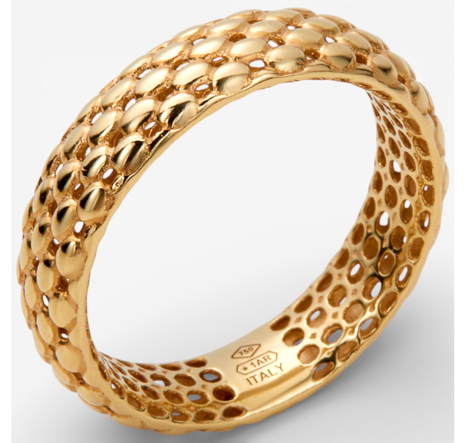 Elevate your everyday style with the sculptural beauty of Uno A Erre’s 18K yellow gold solid mesh ring, a luxurious blend of texture, brilliance, and unmistakable Italian craftsmanship. Its rich mesh‑inspired design wraps the finger in a dimensional pattern that catches the light from every angle, creating a look that’s both bold and refined. Crafted in solid 18K gold with a high‑polished finish, this ring feels as exceptional as it looks, offering a smooth, comfortable fit and a radiant glow.