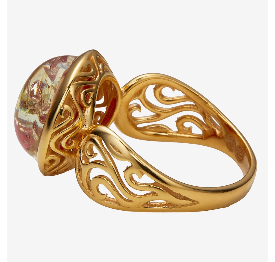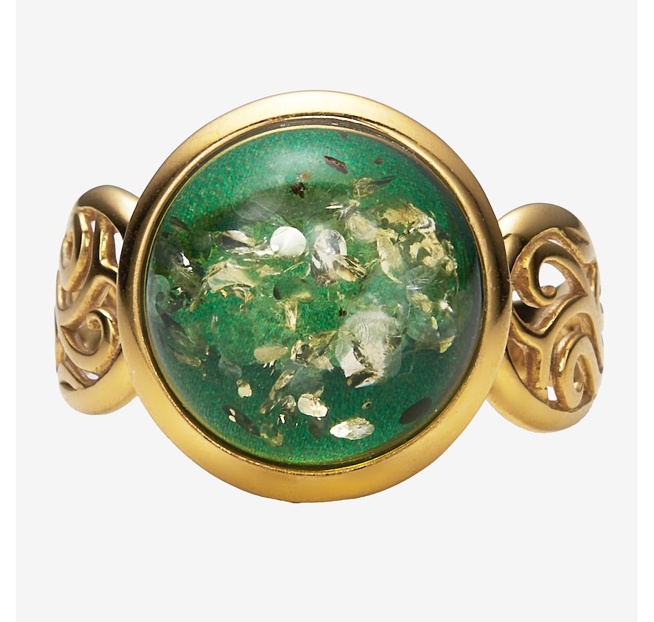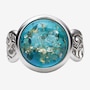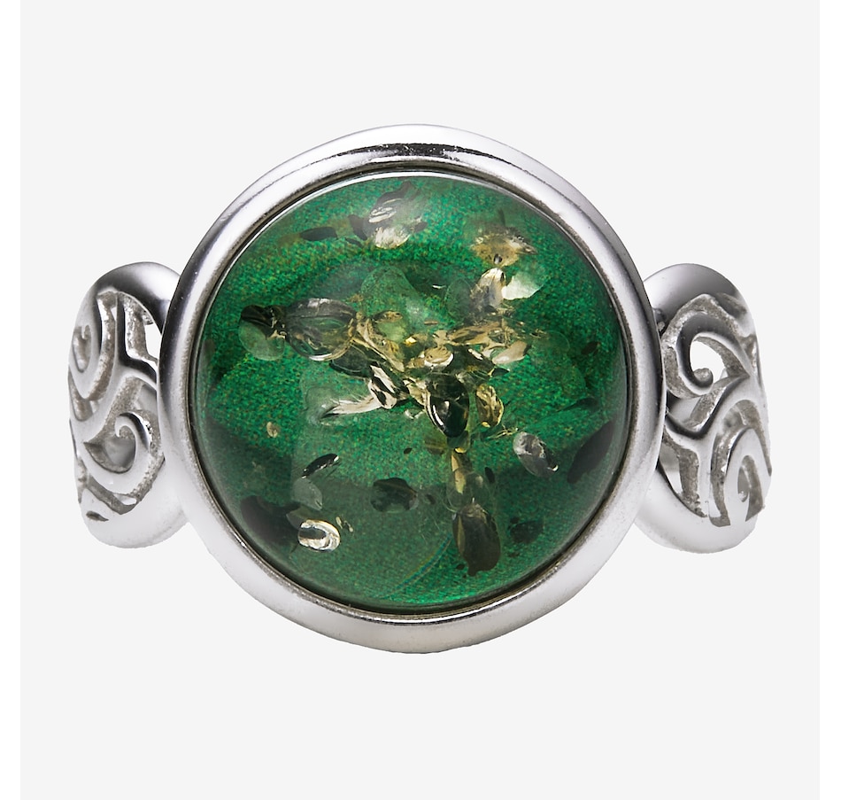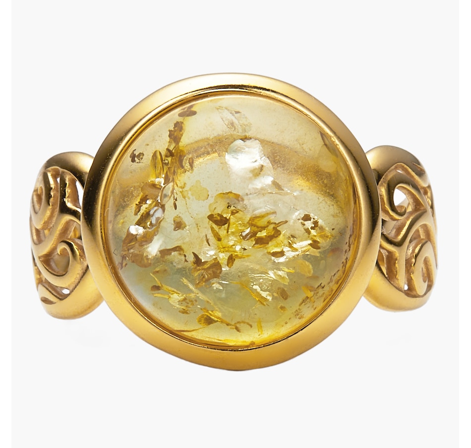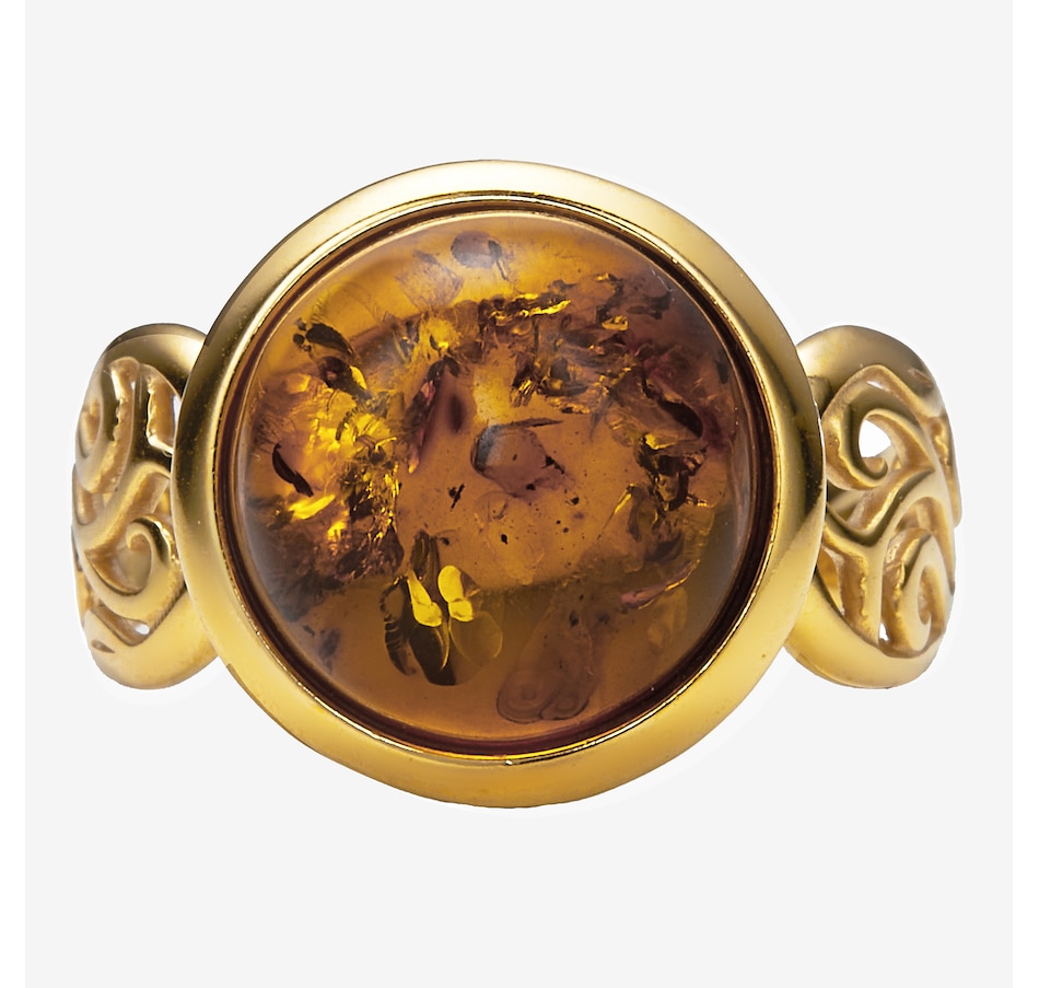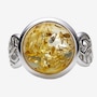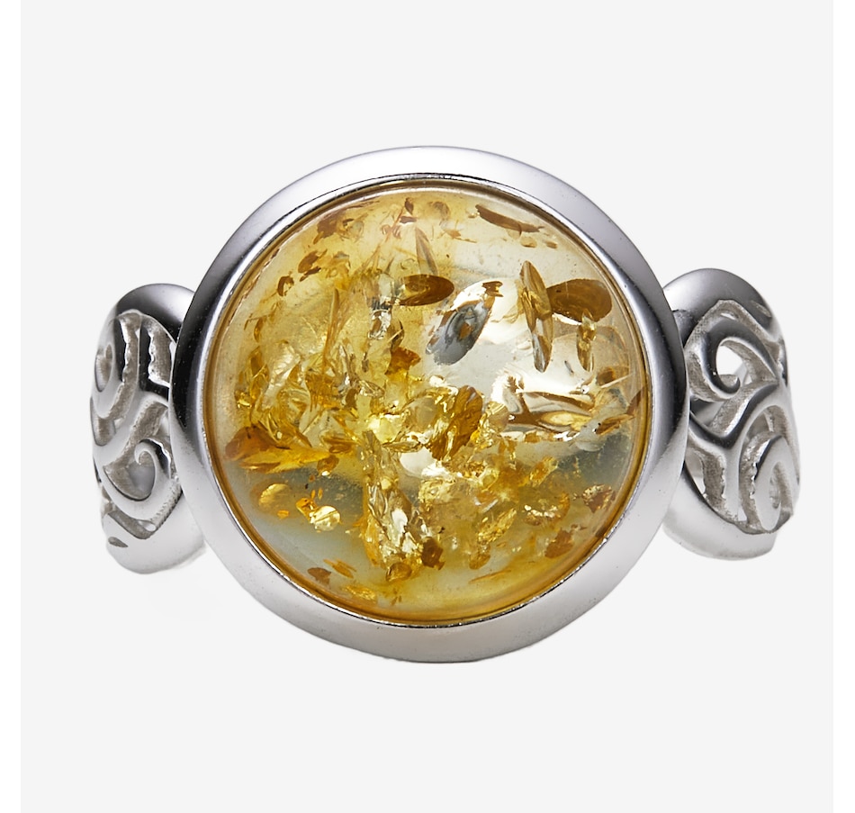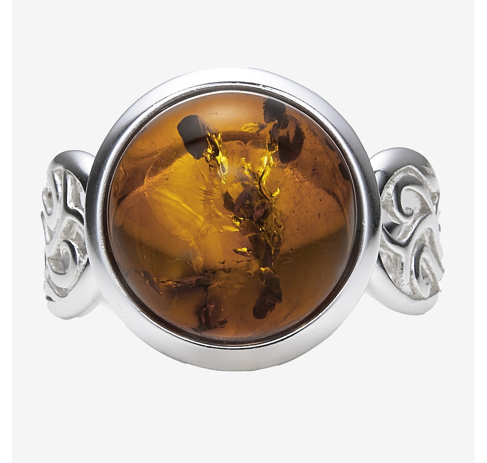 This round cabochon ring showcases the smooth, polished beauty of amber set in sterling silver for timeless appeal. The classic circular design highlights the stone's natural colour, while the side and under galleries add refined detail and comfortable wear. It’s a versatile piece with enduring style.