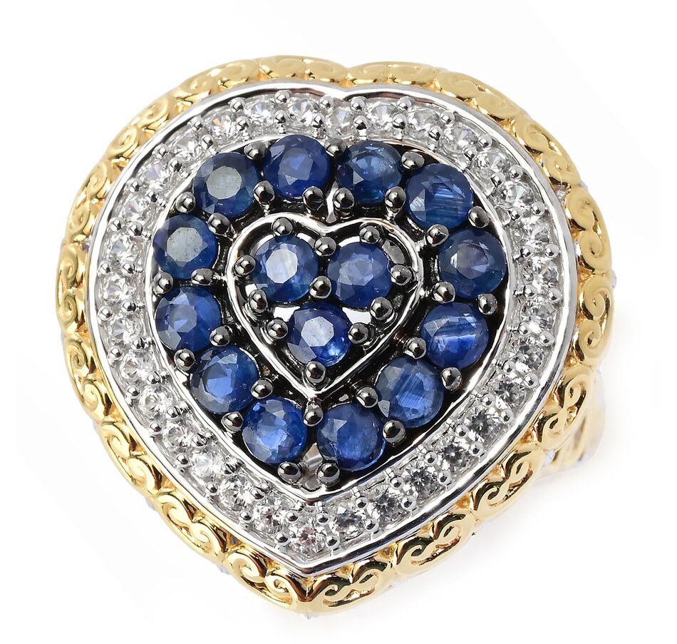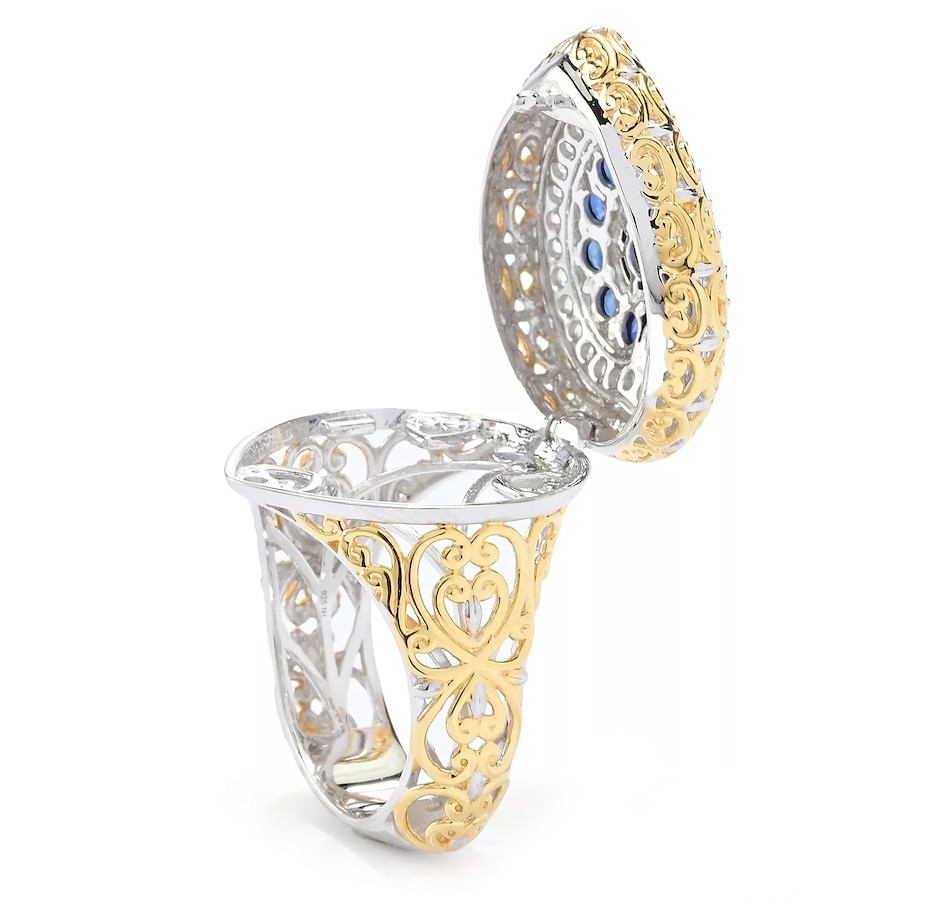 Palladium Silver Royal Blue Sapphire Heart Locket Ring
