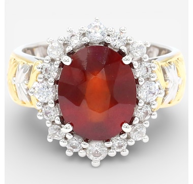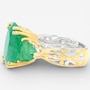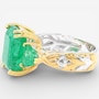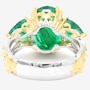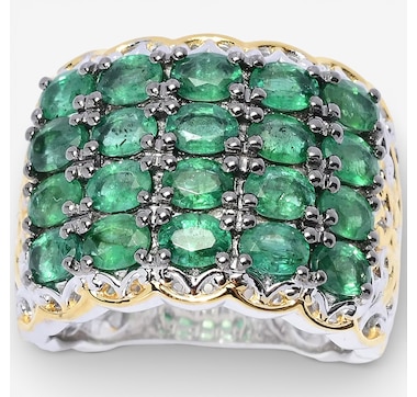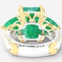 Make a statement of timeless elegance with Gems en Vogue's Zambian emerald three-stone ring. Featuring a breathtaking center stone (choose between a bold 14mm x 10mm octagon or a graceful 15mm x 10mm oval) flanked by two dazzling 7mm trillion-cut emeralds, this design boasts an impressive 8.40 carat total weight. Crafted in durable palladium silver with luxurious 24K yellow gold plating and accented with white rhodium, it delivers a sophisticated two-tone finish that enhances every facet of these vibrant green gems. With its smooth under-gallery for comfort and a striking profile, this ring is as wearable as it is stunning.Â