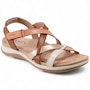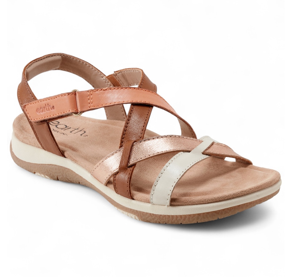 Made with an exceptional comfort, a responsible design, and effortless style, the Earth Sterling casual sport sandal features a strappy silhouette, partially recycled lining, and an adjustable closure. It also features a cushioned footbed with added arch support and a flexible rubber outsole.