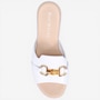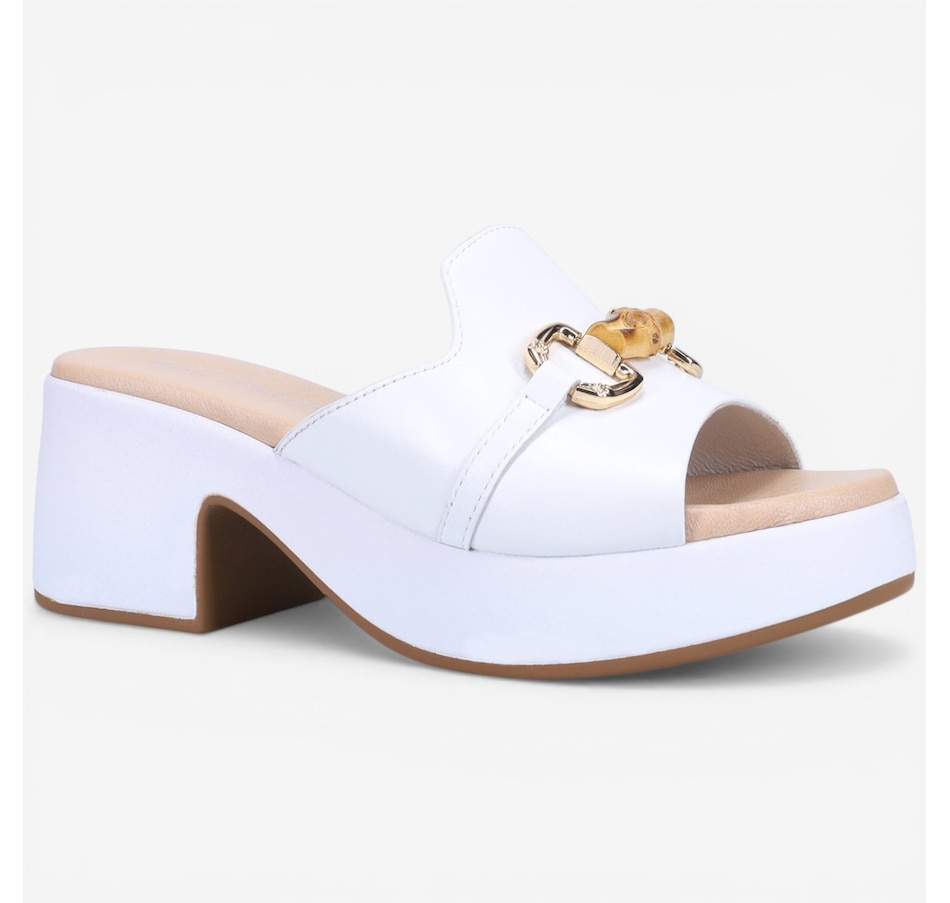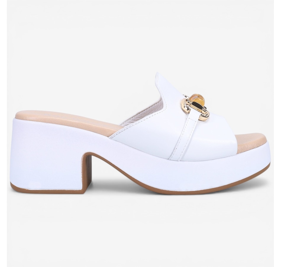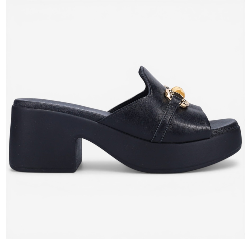 Gwyna Platform Slide in Buttery Nappa. Horse Bit Detail. Thick 5mm gel injected foam cushioning. Ultra lightweight outsole. Made in Italy.