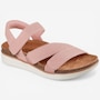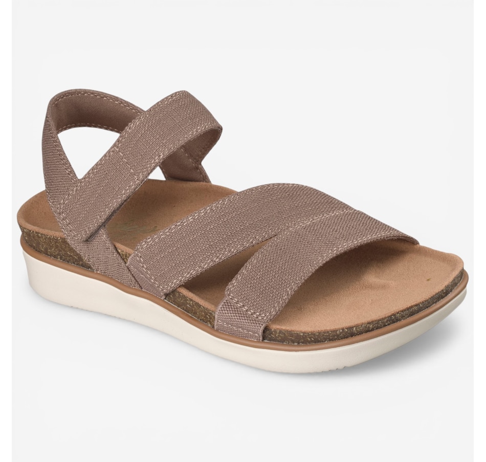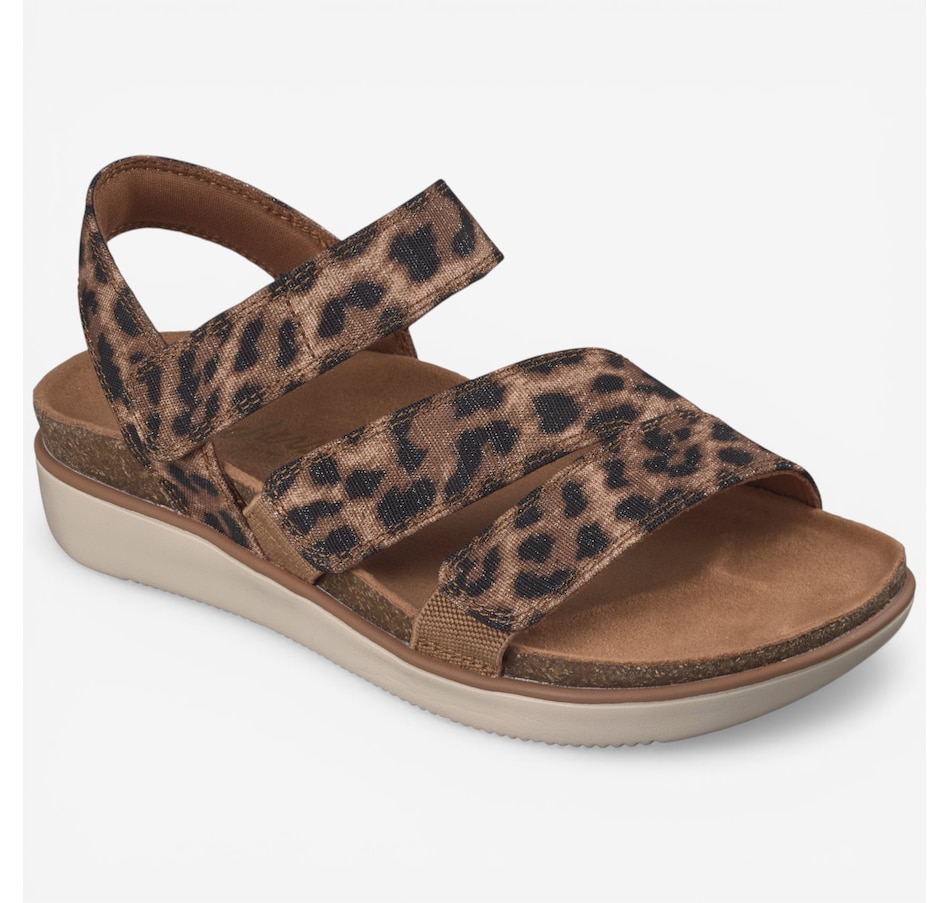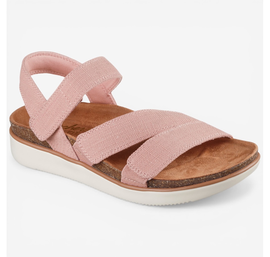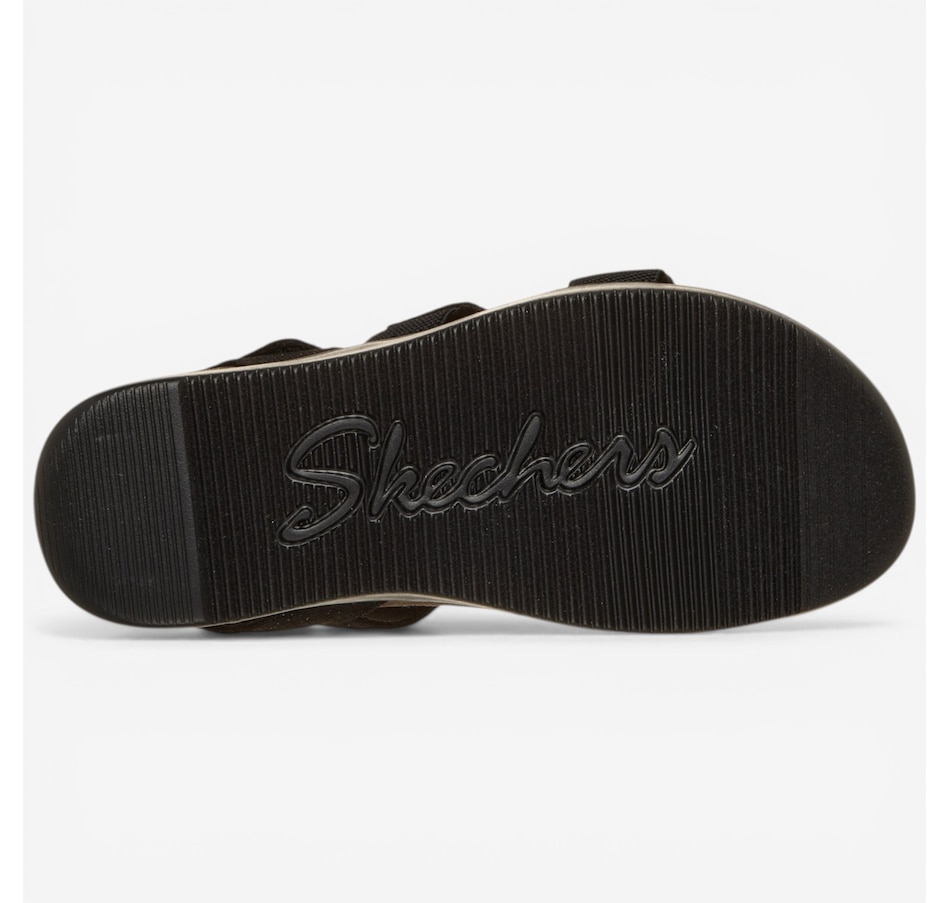 Add shimmer, comfort, and easygoing style to your warm‑weather wardrobe with the Skechers Lifted Comfort Dreamy Eyes adjustable sling back sandal. This strappy canvas design features subtle sparkle detailing that catches the light beautifully, giving every outfit an effortless touch of shine. The convenient hook‑and‑loop slingback closure ensures a secure, customizable fit, while the Relaxed Fit® roomy toe and forefoot design keeps you comfortable from morning strolls to evening outings. A cushioned comfort footbed softens each step, and the flexible traction outsole keeps you steady and supported wherever your day takes you. Crafted from 100% vegan materials, the Dreamy Eyes is a blend of ease, elegance, and everyday comfort.