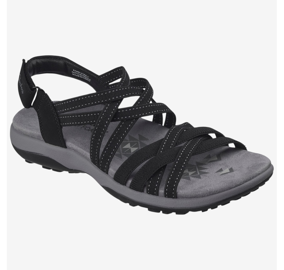 Easy, breezy, and built for all‑day comfort, this Skechers strappy sandal is the ideal warm‑weather essential for summers on the go! It features a Stretch Fit® construction that delivers sock‑like comfort and a secure, flexible feel. The adjustable hook‑and‑loop heel strap allows for a customized fit, while the lightweight, shock‑absorbing Reggae® midsole supports smooth, effortless movement. Underfoot, a cushioned Skechers Memory Foam® footbed adds plush comfort, paired with a flexible traction outsole for confident steps wherever the day takes you. Crafted with 100% vegan materials, this versatile sandal blends relaxed style, dependable support, and feel‑good design.
