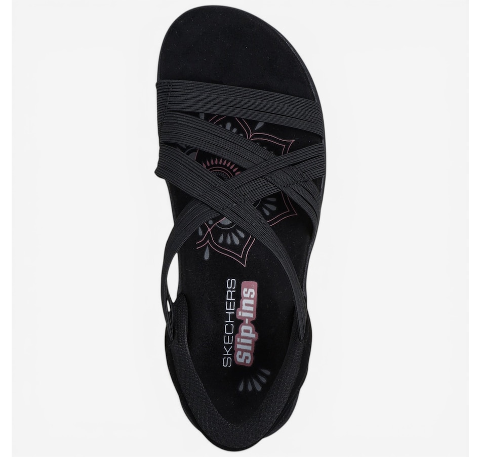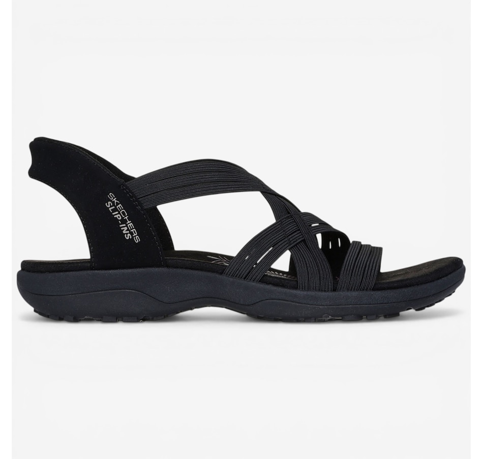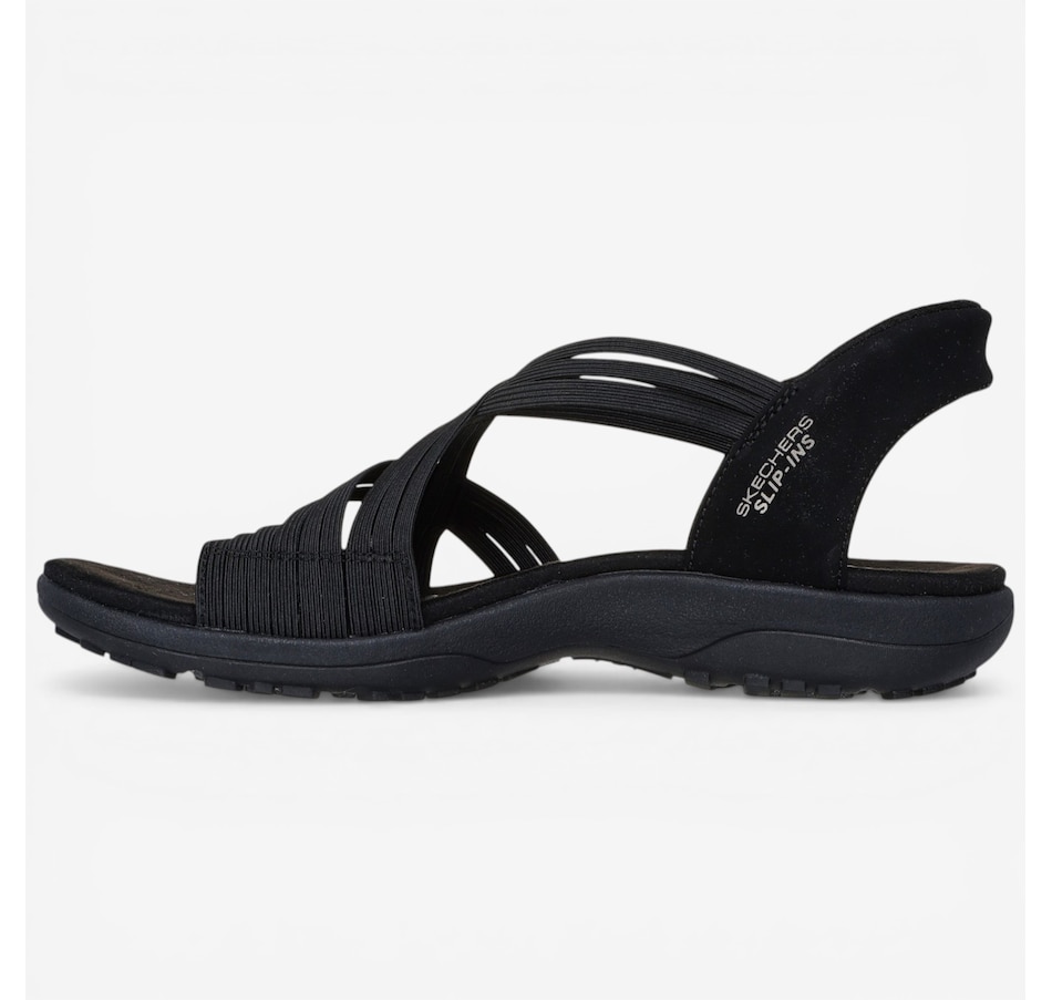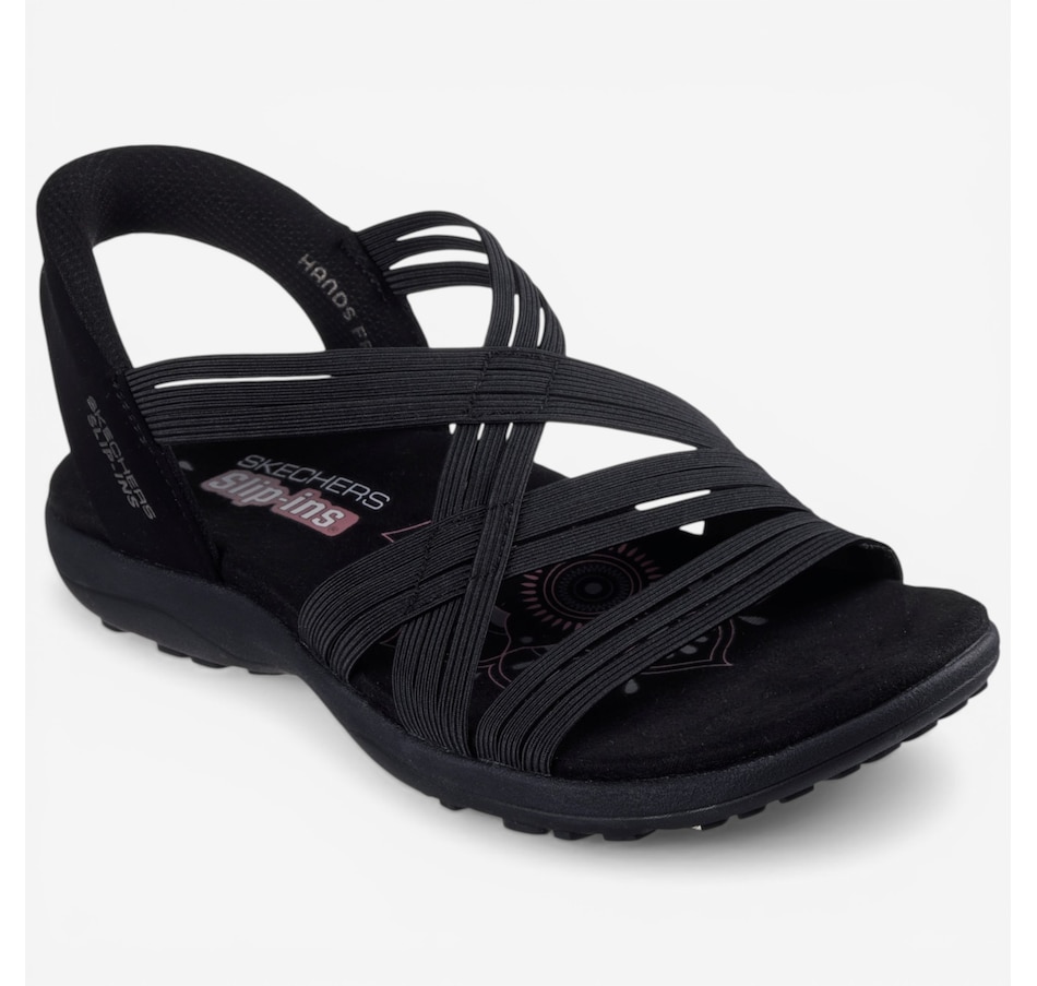 Step into effortless comfort and stylish ease with the Skechers Slip‑Ins Reggae Slim Simply Stretchy strappy sandal, designed for warm‑weather days that demand flexibility and support. This open‑toe sandal features a strappy stretch‑gore upper that moves with you, delivering a breathable, secure fit with Stretch Fit® sock‑like comfort. Thanks to Hands Free Slip‑Ins® technology and the supportive Heel Pillow®, slipping into your sandals has never been easier. Underfoot, the Reggae® lightweight, shock‑absorbing midsole cushions every step, while the Skechers Memory Foam® contoured footbed provides personalized comfort that lasts all day. Finished with a flexible traction outsole and crafted from 100% vegan materials, this sandal blends sporty ease with reliable comfort for all your sunny‑day adventures.