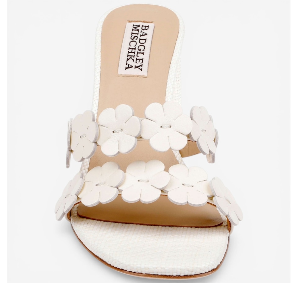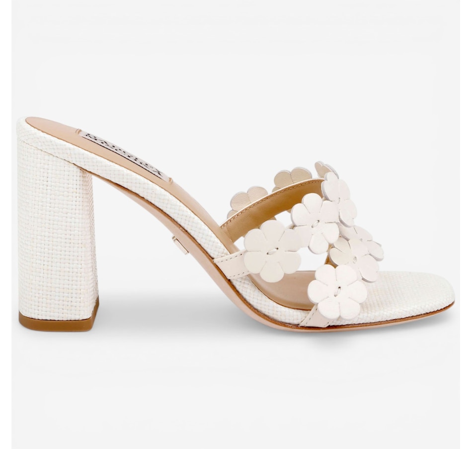 Strong yet soft, the Webster sandal by Badgley Mischka is bold in presence yet delicate in detail. Blossoming floral accents trail across the upper, creating a romantic silhouette that feels both modern and timeless. The substantial block heel adds confident height and grounded stability, giving every step a sense of assured elegance.