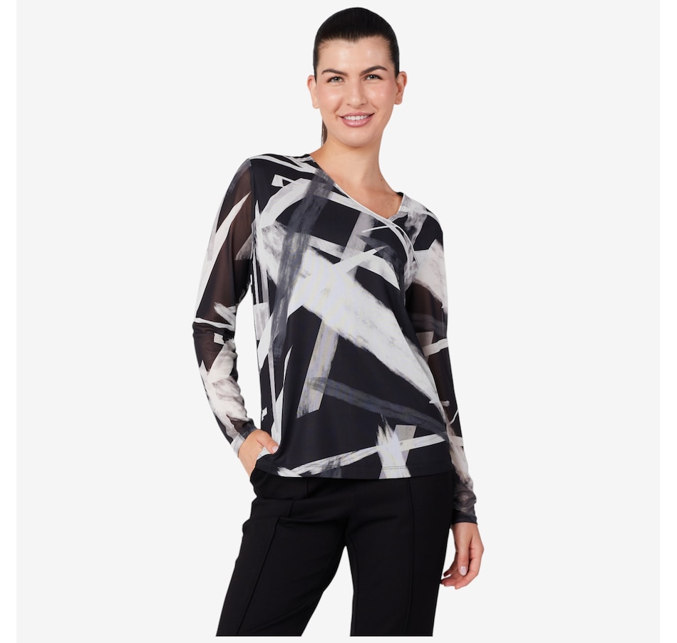 Add something dynamic and eye catching to centre your fall look with this abstract shattered print top from Jhoan Sebastian Grey.
