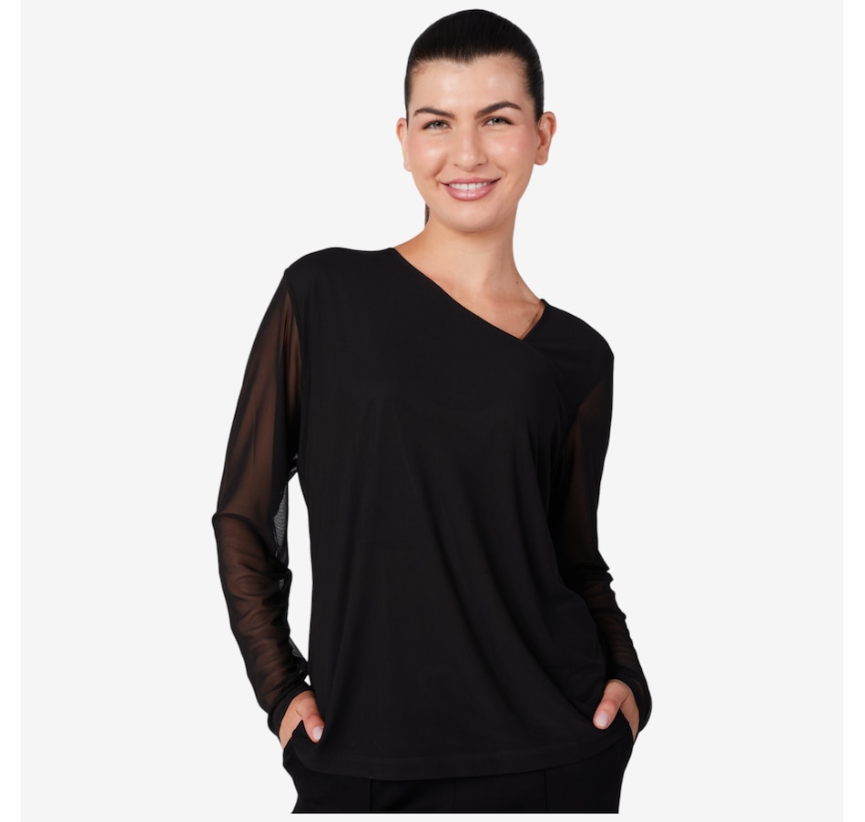 • Fitted, asymmetrical neckline, long sleeves, lined, pull-on