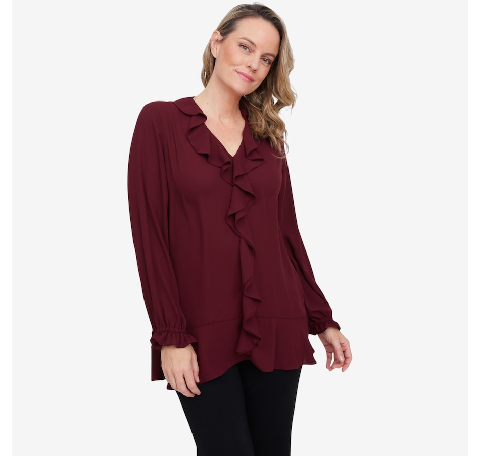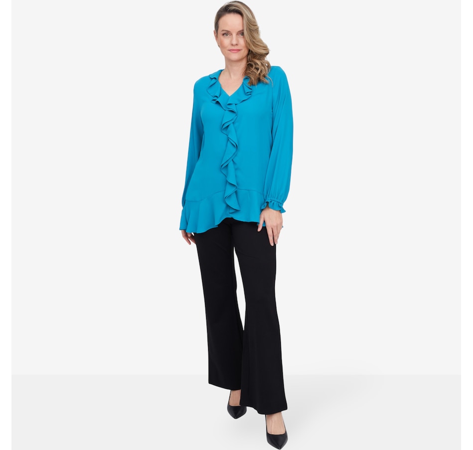 Bring a touch of drama and elegance to your wardrobe with the Cascade ruffle blouse from Guillaume. Crafted from 100% polyester, this piece flows effortlessly, creating movement and style. The cascading ruffles add a romantic flourish, while the long sleeves offer timeless sophistication. Designed in an easy pull-on style, it combines comfort with undeniable charm, making it perfect for evenings out or special occasions. Whether paired with sleek trousers or a flowing skirt, this blouse is a statement of grace and confidence.