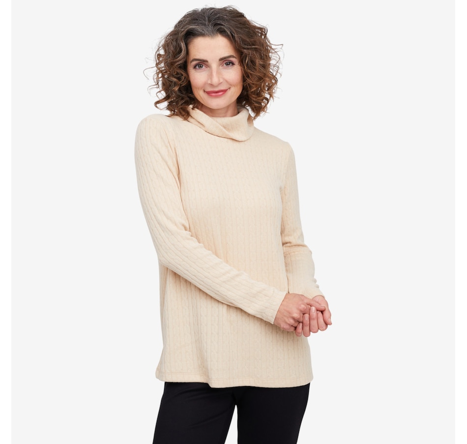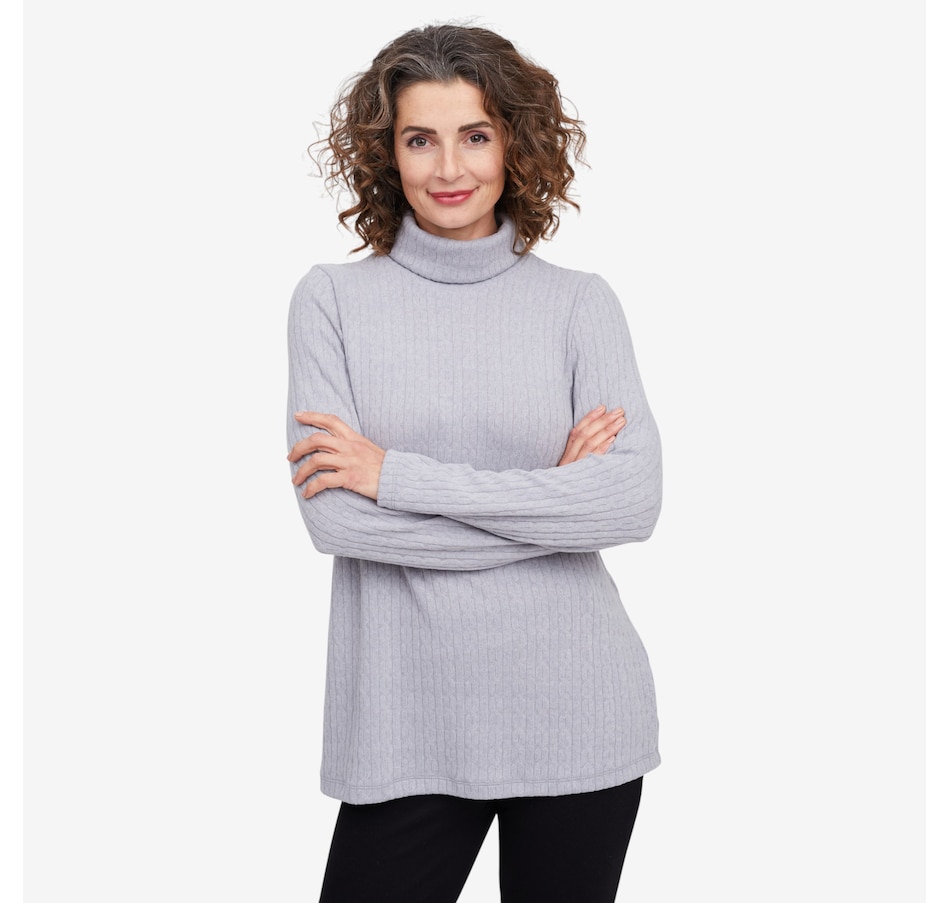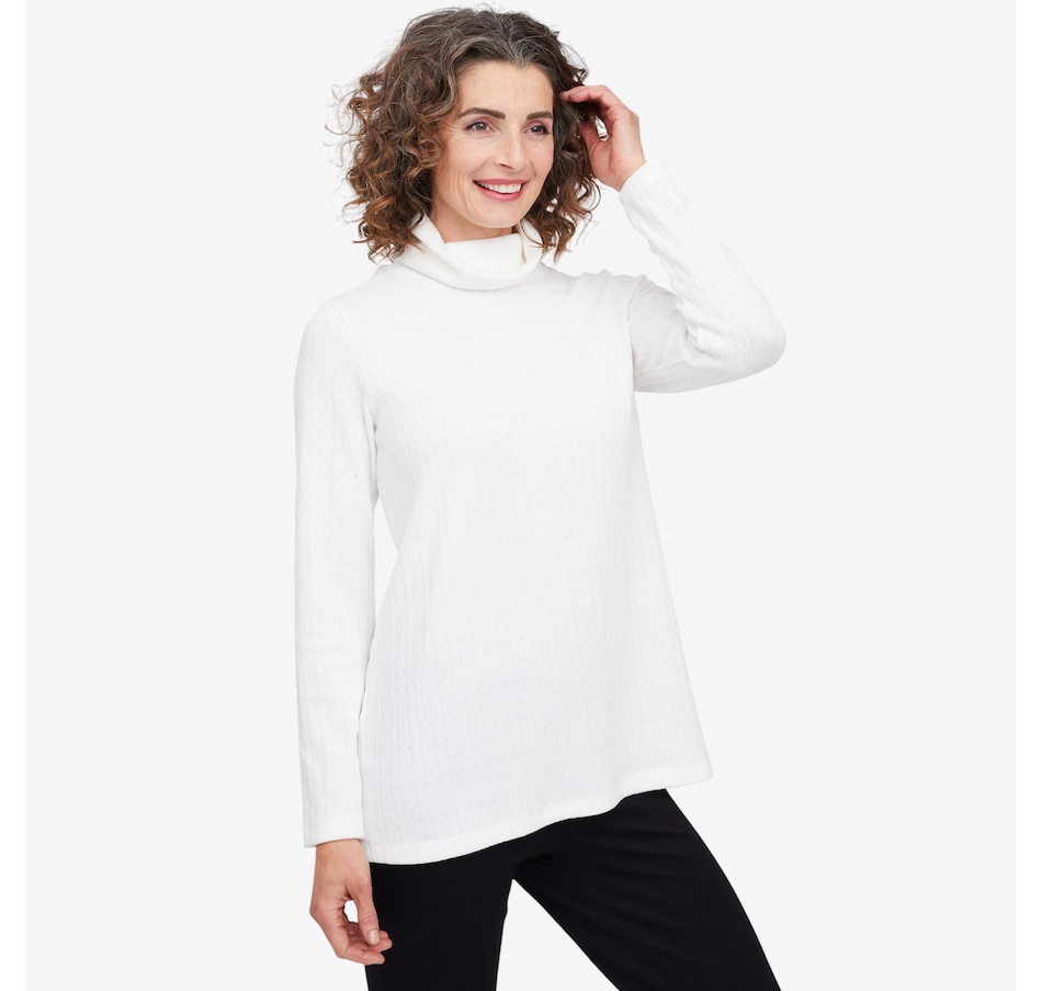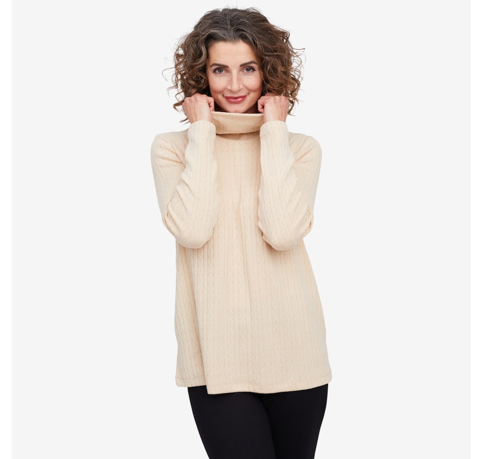 Wrap yourself in understated elegance with this Kim & Co. turtleneck tunic, a piece that feels as timeless as it looks. The softly draped turtleneck frames your neckline with effortless sophistication, while long sleeves offer warmth and grace for cooler days. Designed in a flattering tunic length, it skims beautifully over the body, creating a silhouette that’s both relaxed and refined. Perfect for layering or wearing on its own, this versatile style brings a touch of something extra to everyday dressing.