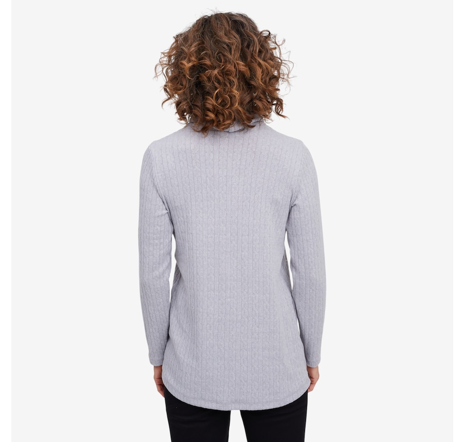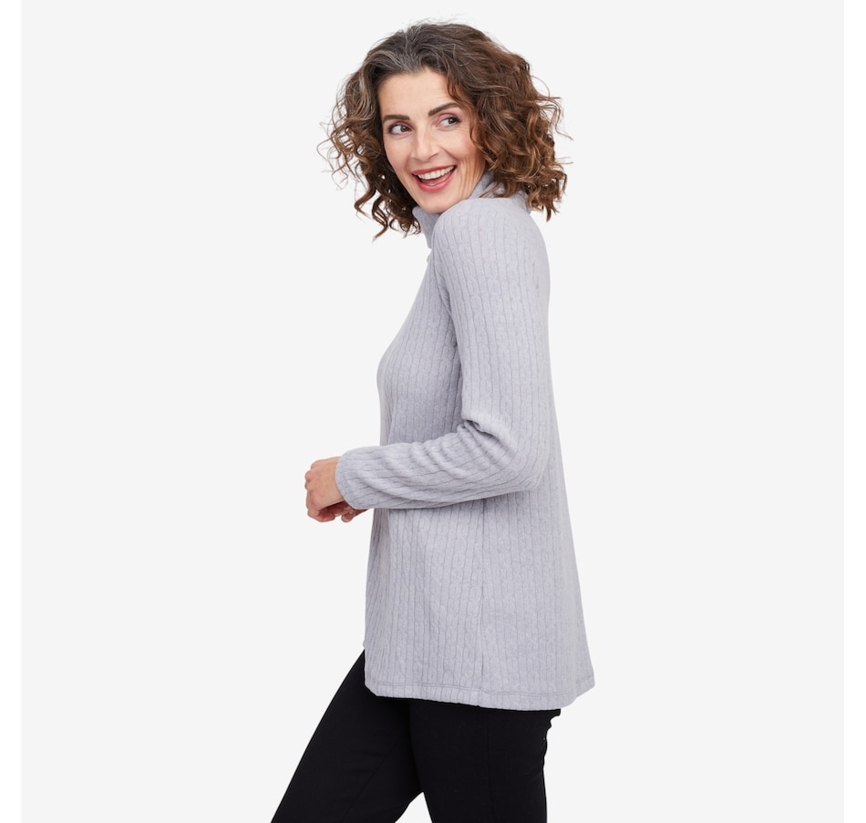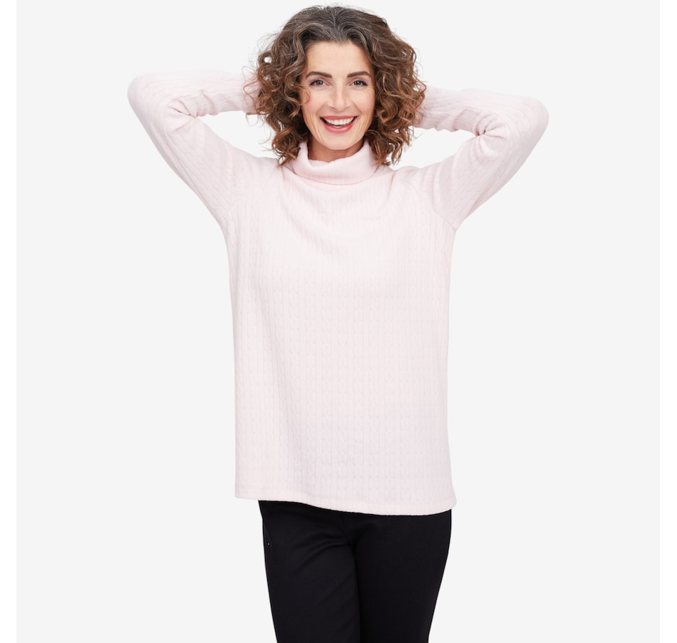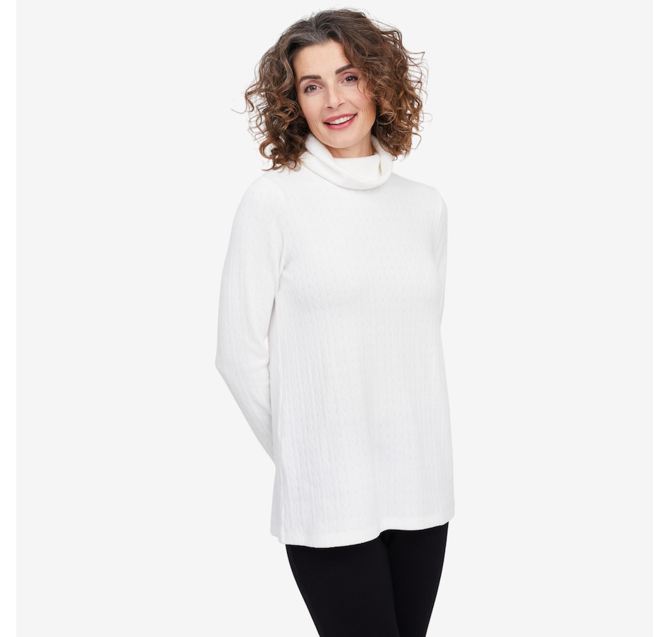 Wrap yourself in understated elegance with this Kim & Co. turtleneck tunic, a piece that feels as timeless as it looks. The softly draped turtleneck frames your neckline with effortless sophistication, while long sleeves offer warmth and grace for cooler days. Designed in a flattering tunic length, it skims beautifully over the body, creating a silhouette that’s both relaxed and refined. Perfect for layering or wearing on its own, this versatile style brings a touch of something extra to everyday dressing.