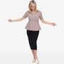 Create a polished, feminine look with Brian Bailey’s knit peplum top, a beautifully flattering piece designed to bring versatility and charm to every wardrobe. The fitted bodice gently flares into a flippy peplum starting at the waist, creating a structured, feminine silhouette that flatters all body types. Crafted from a cool‑hand knit for all‑day comfort, it features a classic crew neckline with a fine knitted band and clean‑finished hems for a refined look.
