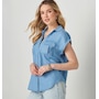 With a fit that will flatter any figure, this relaxed button-down top exudes a casual summer aesthetic that you can effortlessly style for off-duty looks. Made from a super soft and drapeable lyocell fabric, it features a comfortable relaxed fit with a shirt tail hemline, a dolman cuffed cap sleeve, a generously cut v-neck, and pleated patch pockets.