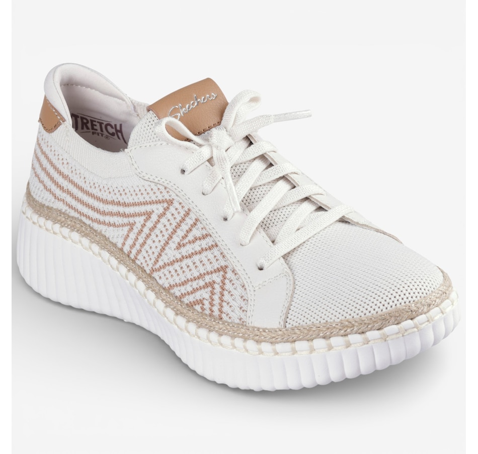 Slip into effortless style and comfort with the Skechers Wilshire Blvd. – Bellevue two-tone knit deco lace slip‑on, designed to keep you moving with ease and confidence. Featuring a pull‑on two‑tone knit upper with decorative laces, this sleek design delivers modern appeal with a laid‑back vibe. The Stretch Fit® construction offers a sock‑like feel that gently hugs your foot, while the flexible traction outsole provides reliable support with every step. Inside, the Skechers Air‑Cooled Memory Foam® cushioned insole keeps you cool and comfortable all day long. Thoughtfully crafted with 100% vegan materials, this slip‑on sneaker is the perfect blend of conscious fashion, everyday versatility, and comfort.