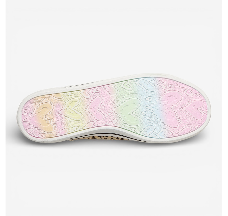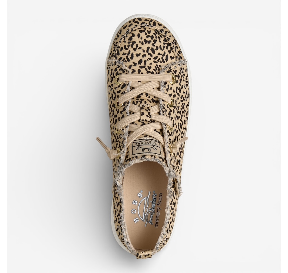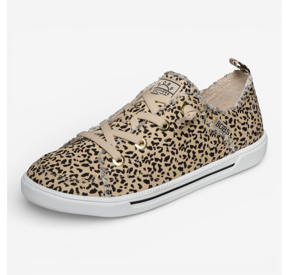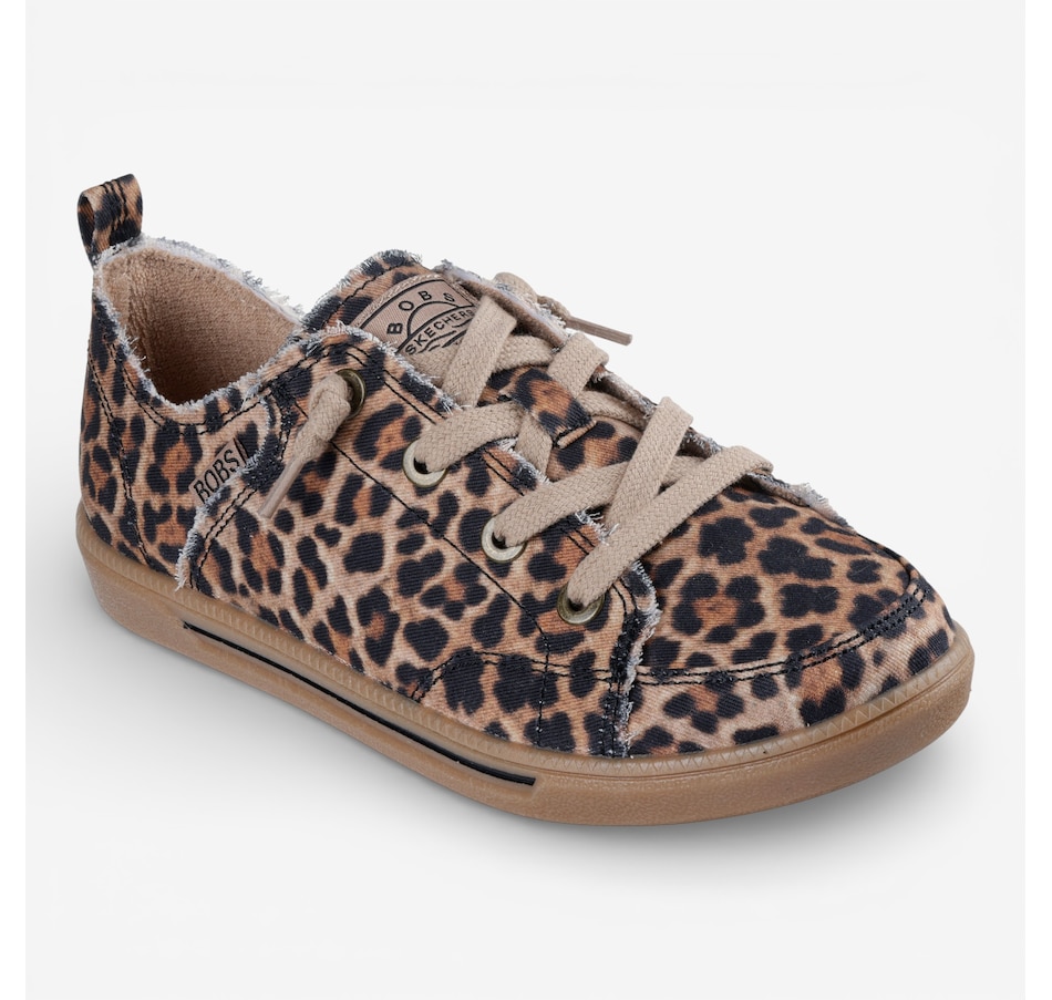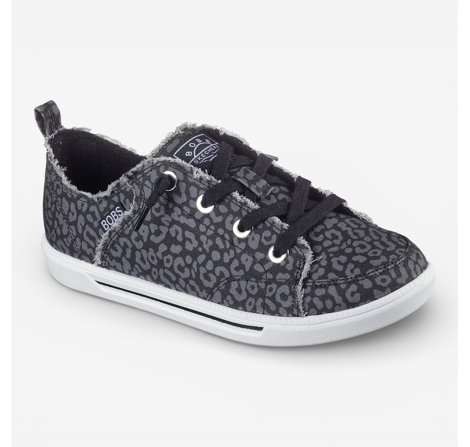 Bold, playful, and effortlessly comfortable, the Skechers BOBS B Cute 2.0 – On Brand frayed canvas slip‑on brings personality to your everyday style. Featuring an eye‑catching animal print canvas upper with trendy frayed trim, this slip‑on adds a fun fashion twist while keeping things relaxed and wearable. Tied‑off decorative laces deliver the look of a classic sneaker with a convenient No Tie Fit® that stays perfectly in place. Inside, the plush Skechers Memory Foam® cushioned insole provides soft, all‑day comfort, while the flexible traction outsole supports easy movement wherever the day takes you. Crafted with 100% vegan materials, this standout slip‑on is a fabulous mix of comfort, conscious design, and on‑trend flair.