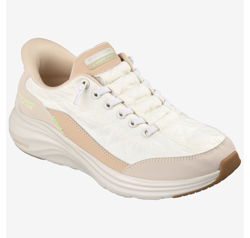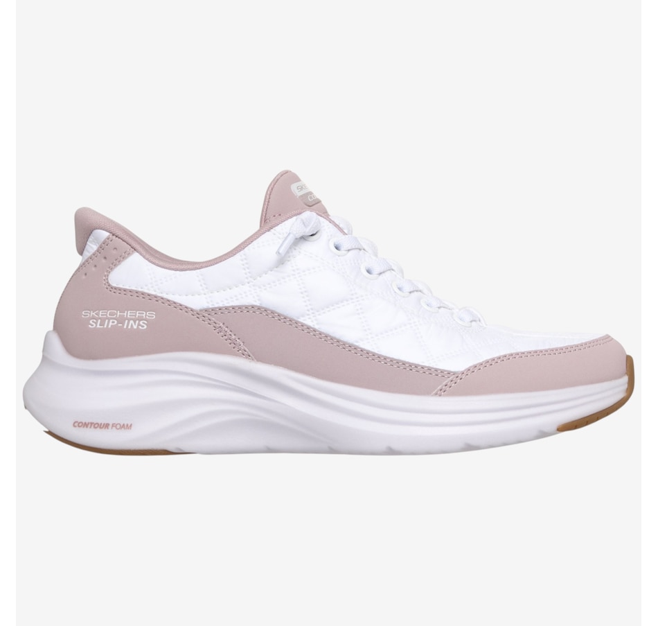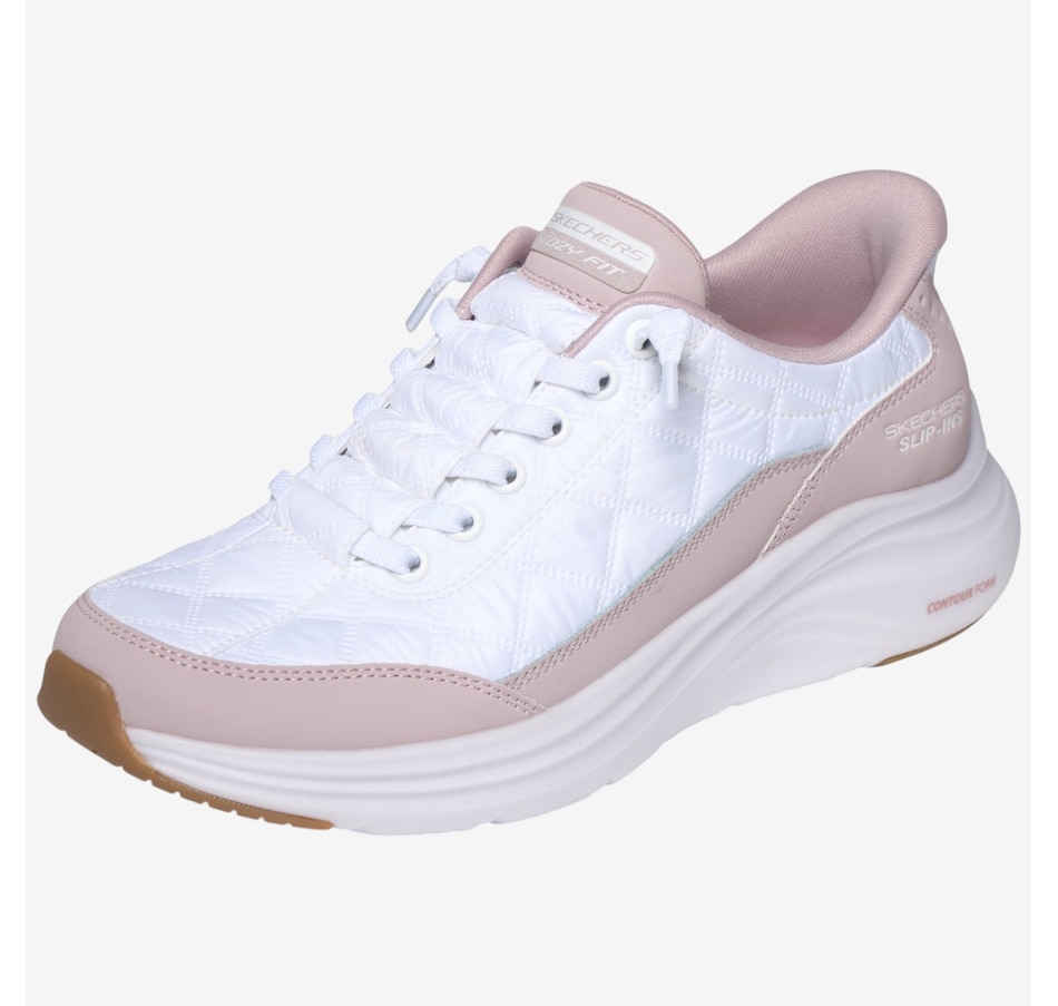 Surround your feet in pure, effortless comfort with the Skechers Contour Foam–Cozy Fit bungee slip‑in, that pampers every step. Crafted with an air‑quilted fabric upper, soft synthetic overlays, and tied‑off stretch laces that never come undone, this style blends cozy luxury with easy convenience. Slip in instantly thanks to Hands Free Slip‑Ins® technology and enjoy the secure embrace of the Heel Pillow®, keeping your foot perfectly positioned. Inside, Cozy Fit® quilted materials wrap your foot in plush softness, while the Contour Foam® lightweight midsole adapts to your unique shape to soften and support every stride. Finished with a Skechers Air‑Cooled Memory Foam® insole for breathable cushioning and a flexible traction outsole for smooth movement, this comfort‑first design makes every step simply exceptional.