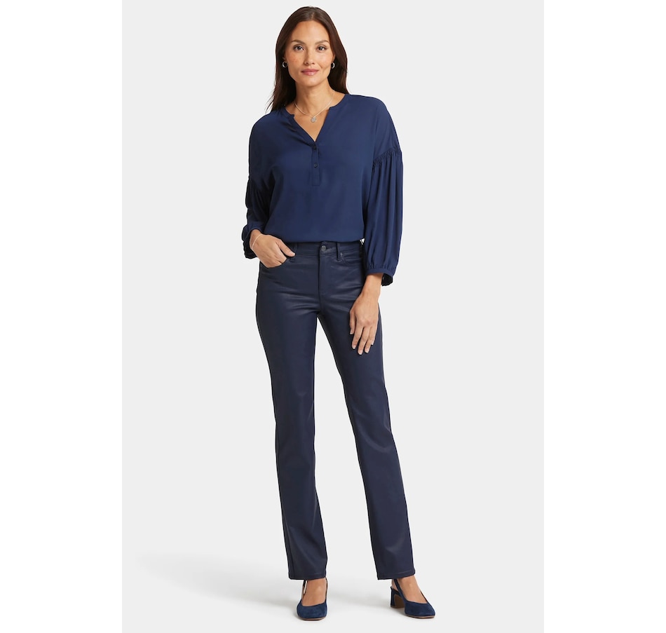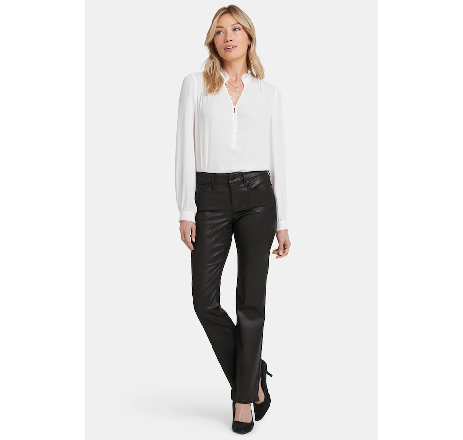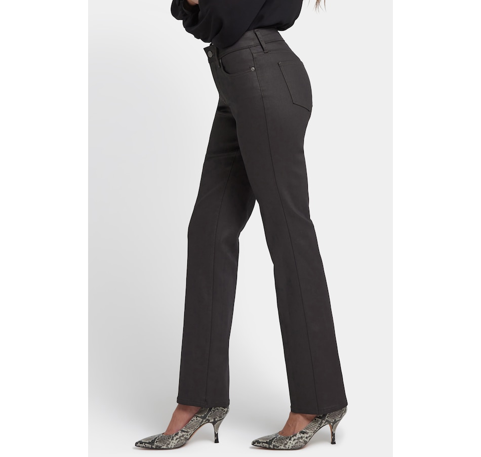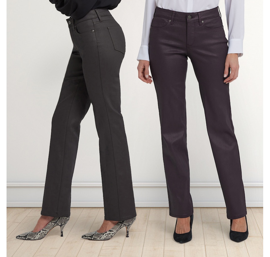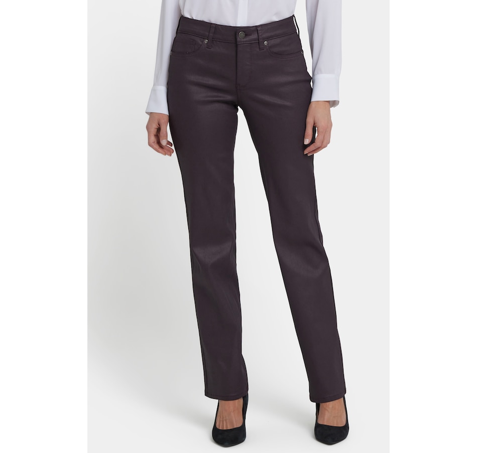 The curve-sculpting, figure-elongating construction of NYDJ's coated Marilyn straight jean pairs well with everything, in a classic straight-leg silhouette. A coated finish gives it a sleek, sophisticated appearance that is fabulous for both everyday wear and special occasions. Lift Tuck technology uses a proprietary slimming panel with a patented criss-cross design to shape and support your curves. This jean features a classic five-pocket styling and a zip fly with button closure. Get yours today at a fabulous showstopper value, right here at TSC!