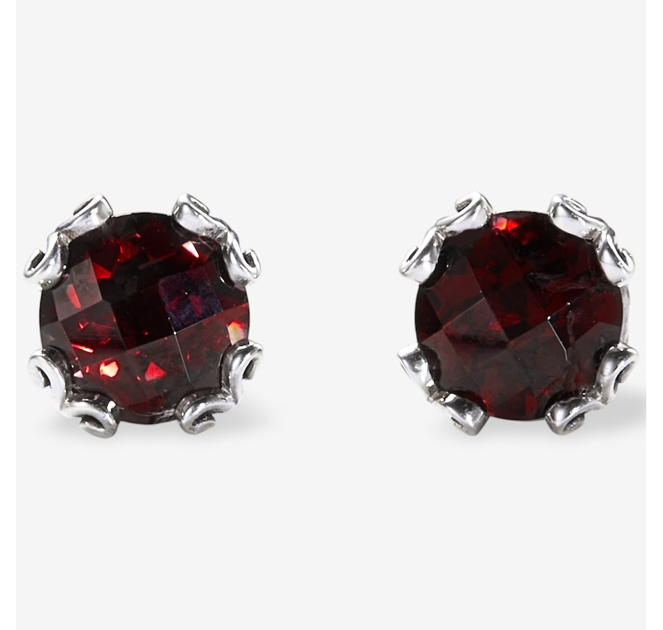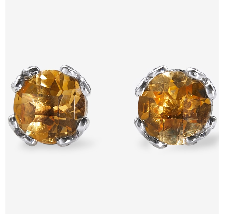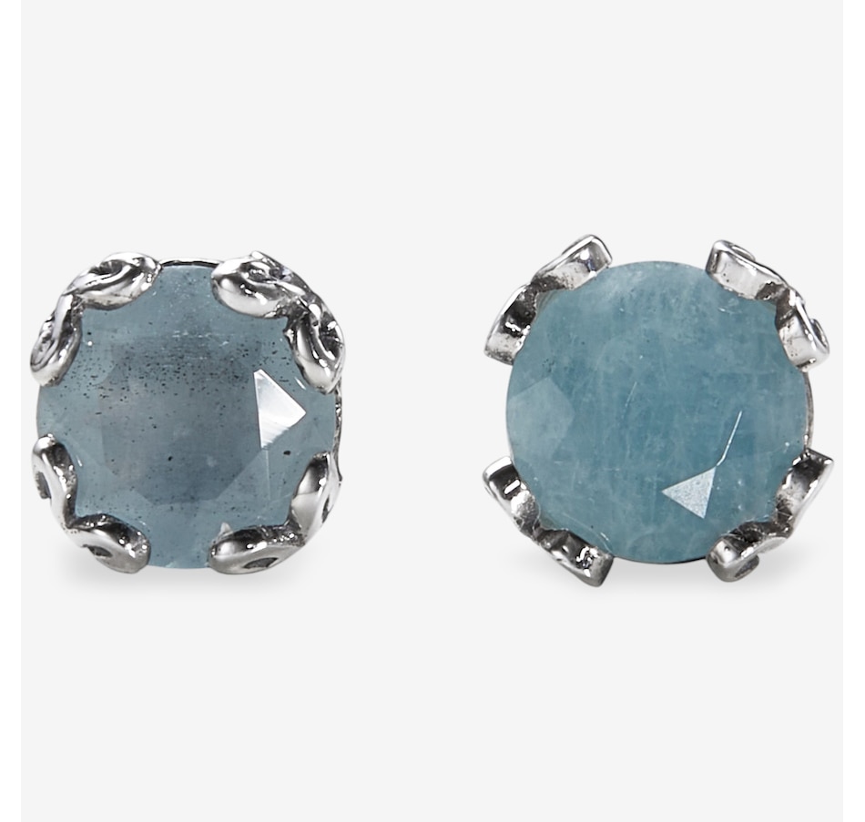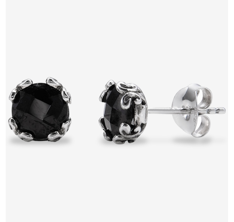 • (2) 7mm round, bezel-set and faceted gemstone: aquamarine (2.5 av. ctw), black spinel (3.30 av. ctw), sapphire (3.30 av. ctw), citrine (2.40 av. ctw), garnet (3.70 av. ctw) or rainbow moonstone (2.20 av. ctw)
