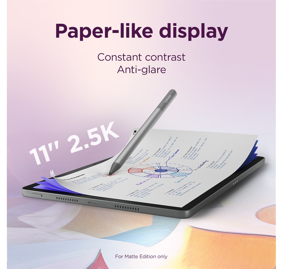 This Android tablet from Lenovo offers details that come to life and colours that pop on its 11.5-inch 2K screen, plus eight JBL speakers with Hi-Fi structure for crisp highs and pounding bass, and wonderfully immersive Dolby Atmos audio. Its 175-degree kickstand and Bluetooth speaker mode help redefine personal entertainment, its octa-core processor and 90-Hz refresh rate can provide smooth and uninterrupted gaming sessions, and you can stream all day on its 8,600-mAh battery. Also included is a pair of Lenovo Bluetooth earbuds.