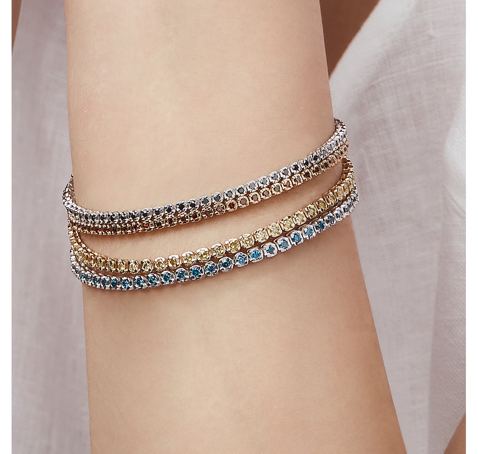 • 7 1/2" bracelet: (62) round, prong set and faceted choice of coloured diamonds (2.00 av. ctw)
