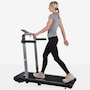 The InStride Treadmill has a top speed of up to 7.5 mph, and can also be used in Work Mode with the handlebars folded all the way down so you can use it at your stand-up desk, though Work Mode only allows a maximum speed of 2.5 mph.