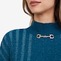 Elegant and refined, this lurex blend sweater from Aggel is designed with a high neck and a sophisticated metal embellishment. It features a geometric textured knit pattern and long slightly flared sleeves. It also has a subtle metallic yarn throughout and offers a relaxed yet feminine fit.