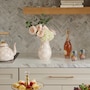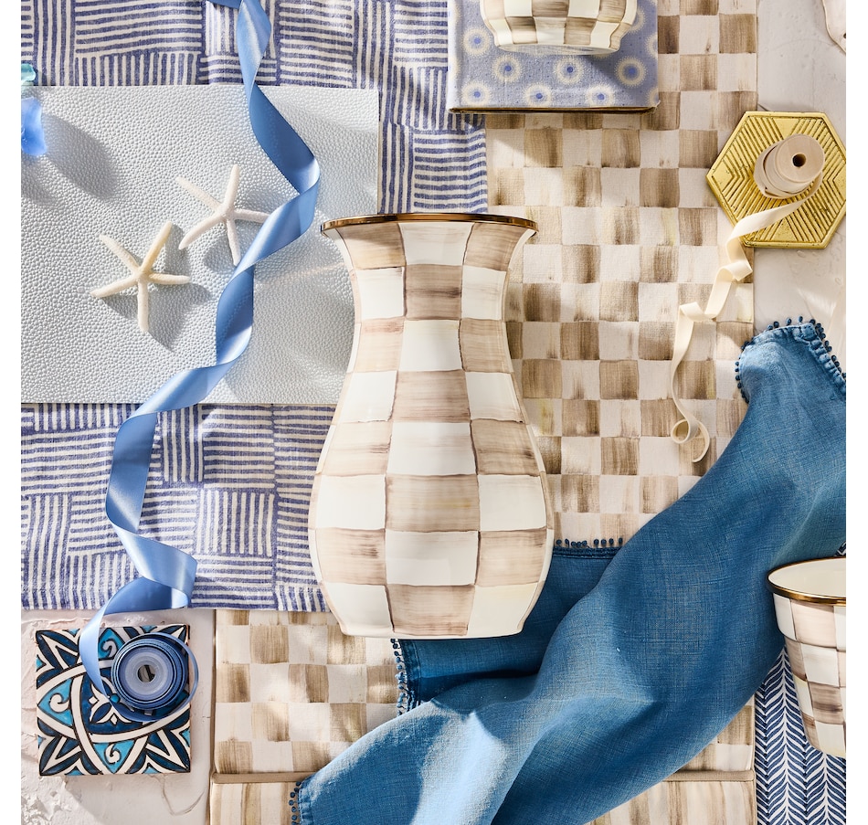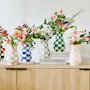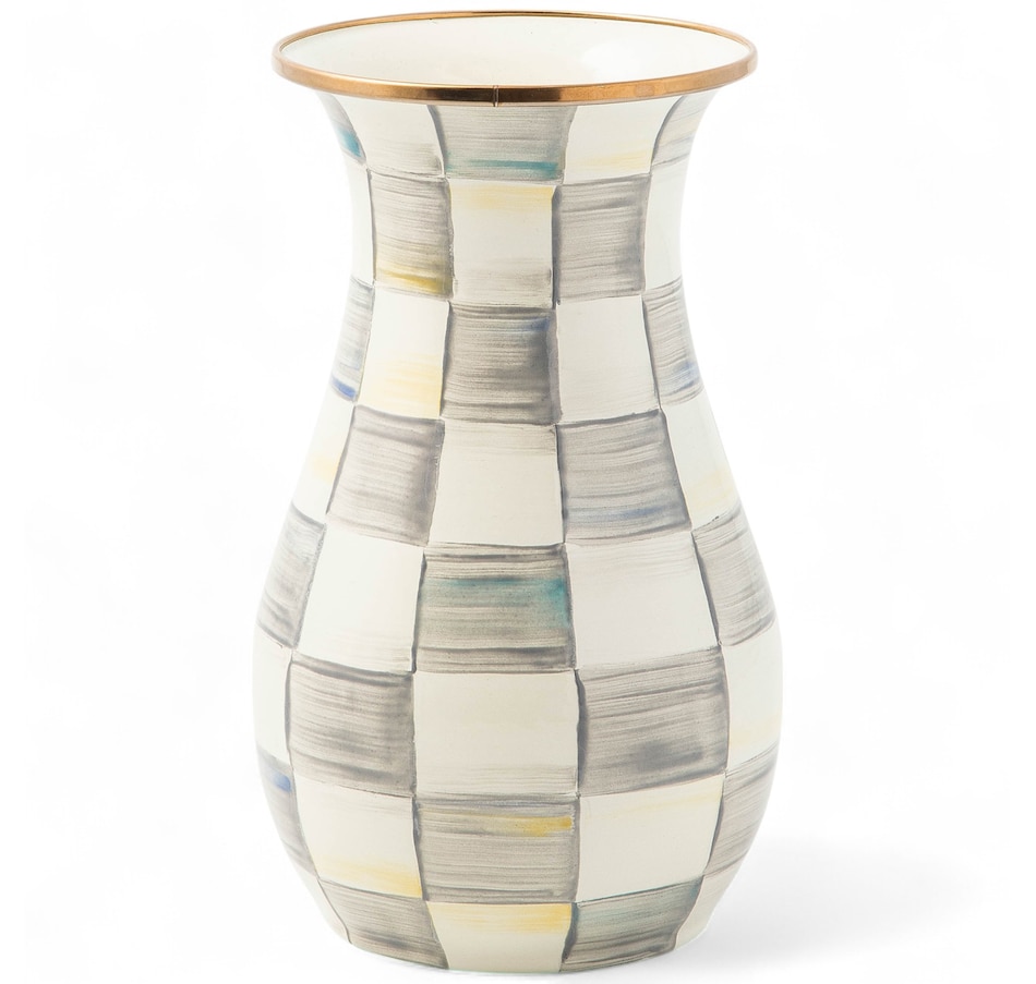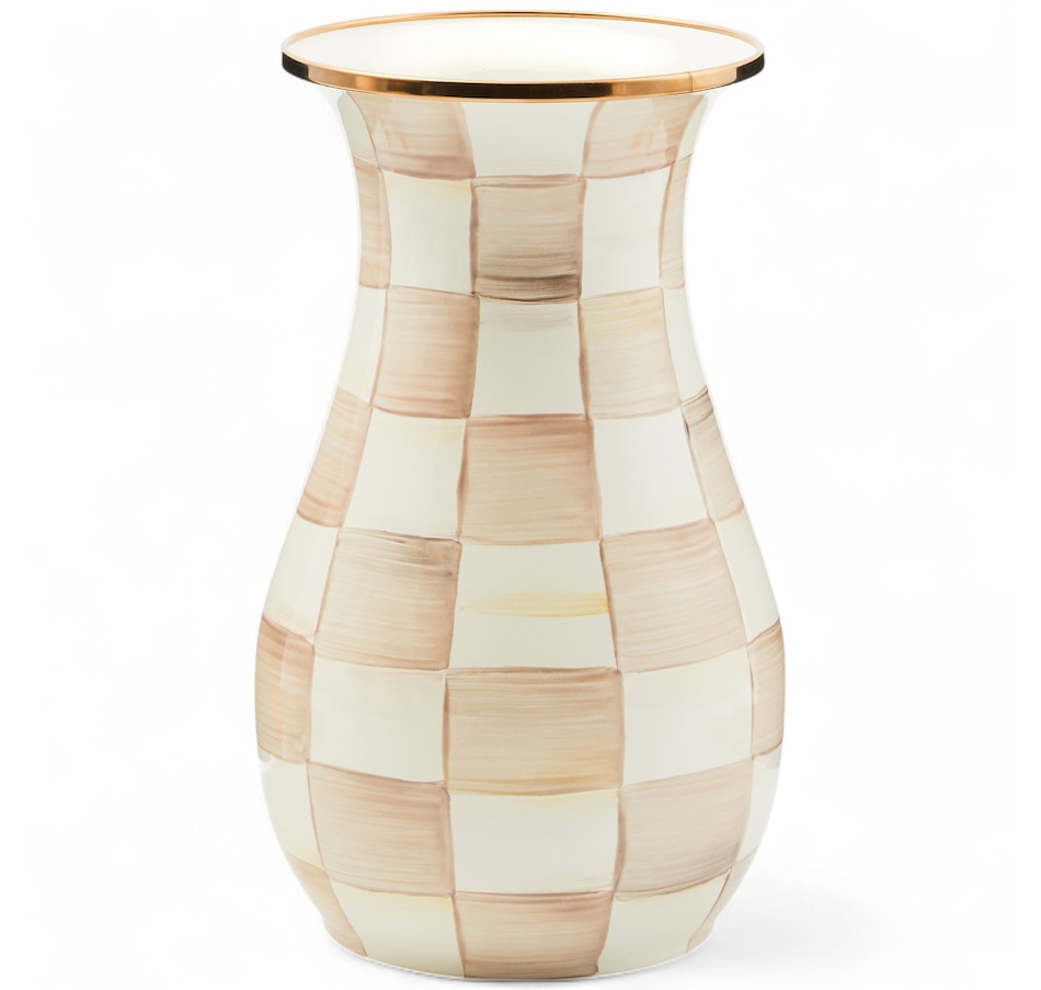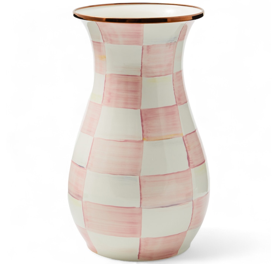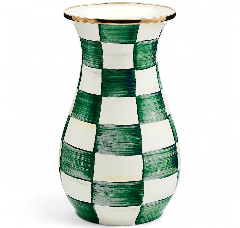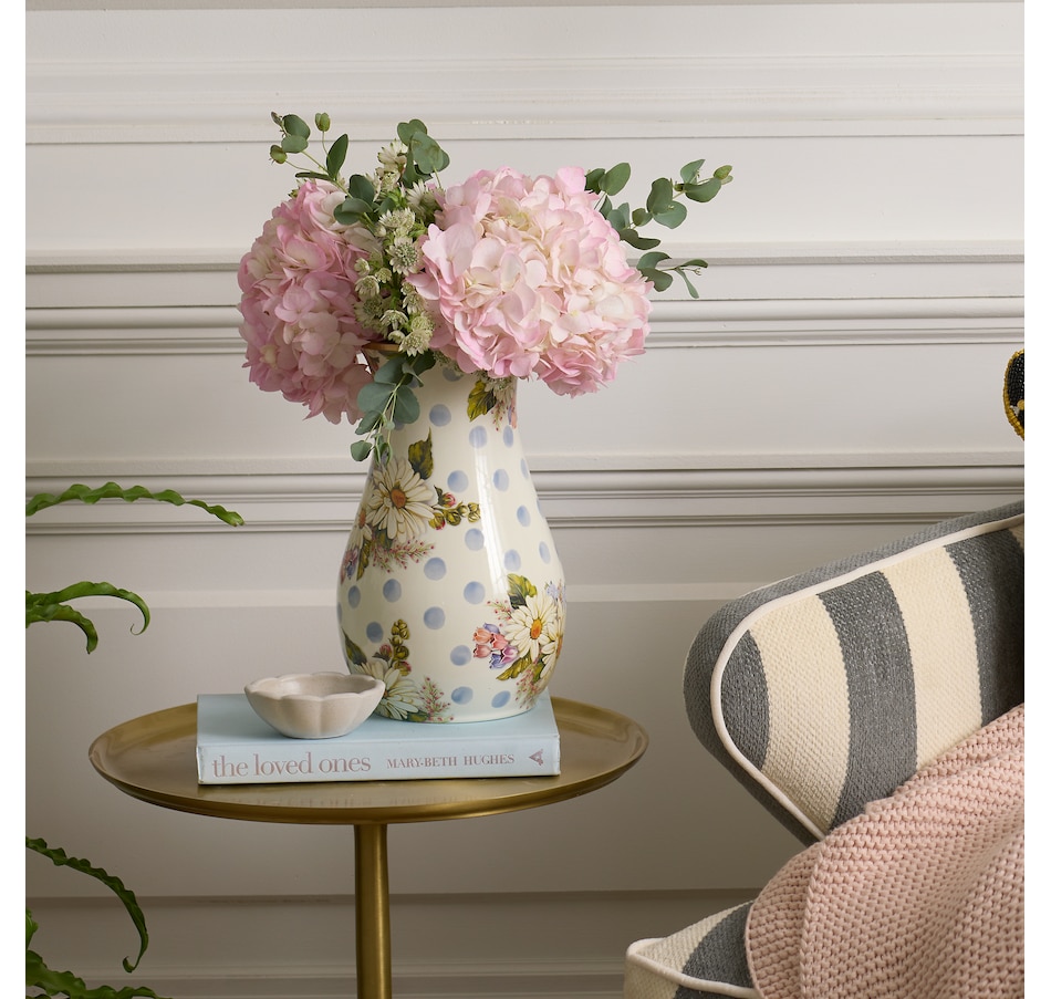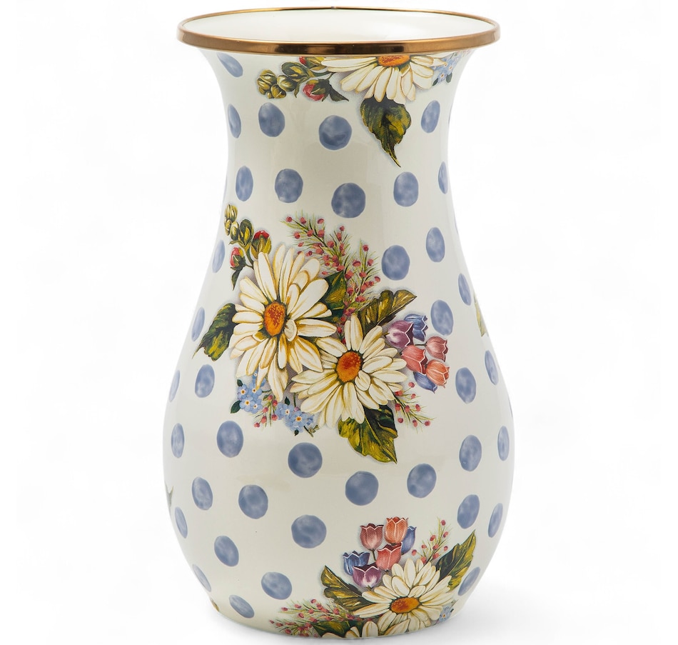 Farm-fresh and inspired by traditional glass milk jugs, this tall vase is the kind of vessel that's just right for a casual wildflower bouquet, cherry-blossom branches or pussywillow stalks. It's made of hand decorated enameled steel, decorated with hand-painted pattern and trimmed with a bronzed rim. Please note, these pieces may vary due to the handmade nature of each product.