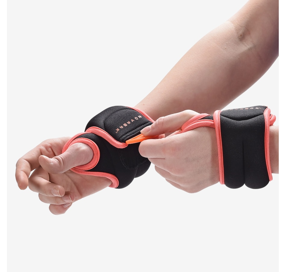 Nuvabar Wrist Weights feature an open-palm design which fits securely around the thumb and wrist, allowing grip changes on any exercise equipment without removal. Water-resistant neoprene exterior—simply wipe clean.