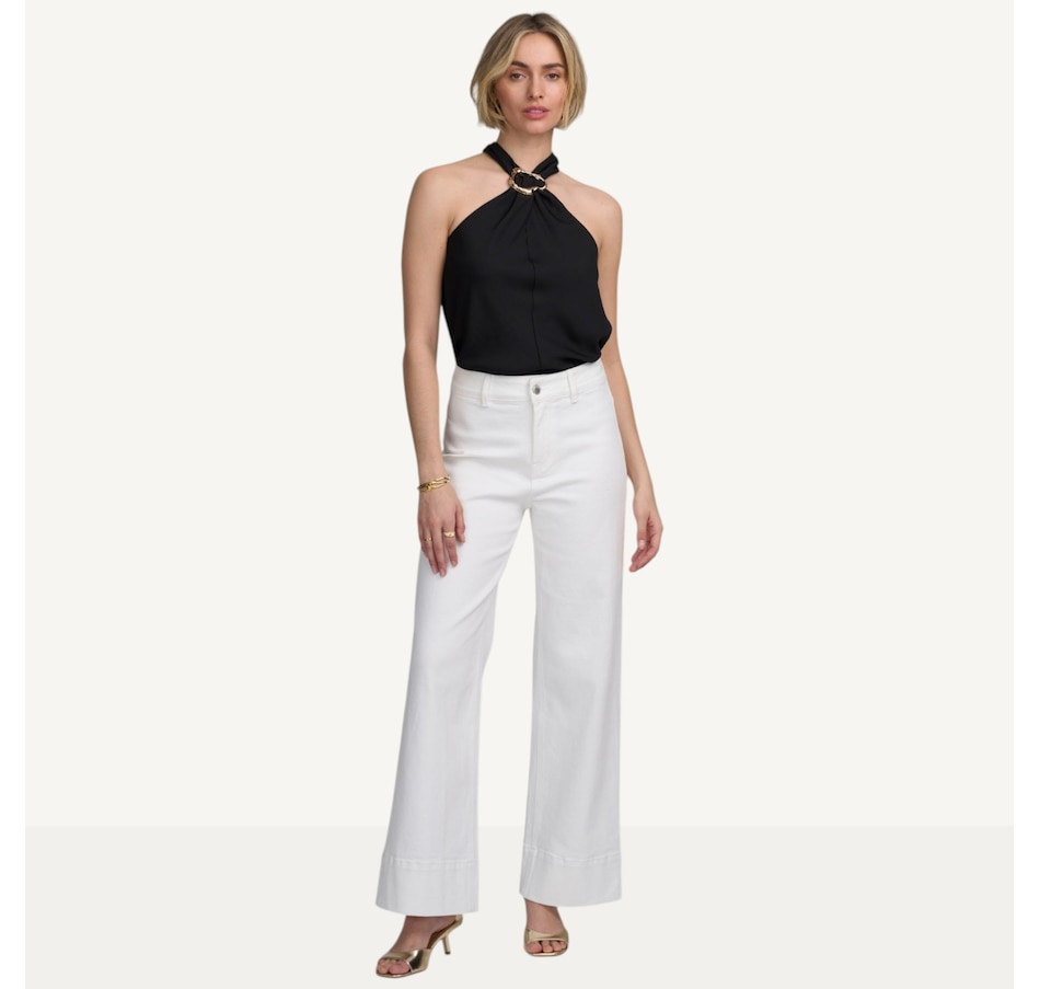 Step into elevated everyday style with the ELLE cropped wide leg jean, the perfect blend of modern polish and feel‑good confidence. Designed with a flattering wide‑leg cut, this pair elongates the body while offering a relaxed, effortlessly chic silhouette that complements a wide range of shapes. The cropped length creates a clean break at the ankle, making it ideal for showing off your favourite heels, sandals, or statement boots. Crafted from premium, structured denim, these jeans hold their shape wear after wear while maintaining a smooth, comfortable feel. A high‑rise waist defines and supports, creating a beautifully balanced silhouette that pairs seamlessly with cropped tops, tucked‑in blouses, and tailored jackets.