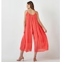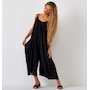 Big on style and easy on fit, this flowy crinkle romper from Charlie Paige features a full gathered one piece style that is flattering for all body types. Balanced with a delicate raw edge neck and armholes along the front with slender adjustable straps, this piece is fully lined with flowy wide legs and complimentary side seam pockets, all in a breathable rayon.