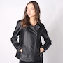 Timelessly cool, you'll finish every look in style with this pleather moto jacket from Nina Leonard.