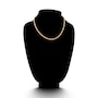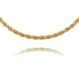 This classic 14K gold necklace features a 4.40mm round yellow gold rope chain, measuring 17" in length. A white gold box link chain is intertwined around the rope providing a two-tone aesthetic. A lobster claw clasp provides the finishing touches.