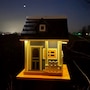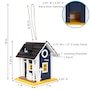 Give the small birds that frequent the backyard or patio a luxurious place to rest by hanging this charming cottage wooden bird house decor from the attached rope on a tree branch, shepherd hook, beam, or railing. This hanging bird house is the perfect size for small birds like wrens, sparrows, bluebirds, martins, or chickadees. It is made from durable pine plywood and is designed to be used outdoors. The bird house has a 1" diameter hole so birds can peek inside to create a nest. There is a string of solar lights at the top of the eaves to illuminate the house at night. The solar lights require 8 hours of direct sunlight to fully charge and will stay on for approximately 4 hours on a full charge. The bird house has a 2.25" square door with a latch on the side to easily open it to access and clean the inside.