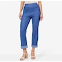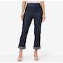 You'll elevate your ensemble in classic, versatile style with this beautiful deluxe denim narrow leg cuffed trouser from Kim & Co. It features a wide comfort waistband, patch pockets at the back, and a smart folded cuff at the hem.