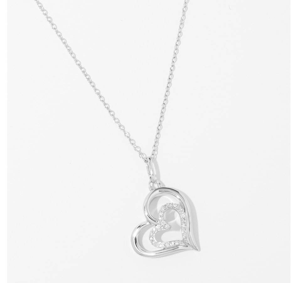 Colour of Diamonds Sterling Silver Double Heart Diamond Pendant with Chain
