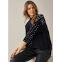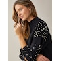 This Miami from Charlie Paige is a mock neck sweater with a structured, multi-textural knit with a high low hemline. It has a 3/4 length sleeve length, embellished with pearl and diamante studs, and all in a luxe yarn with a soft hand in a relaxed silhouette.
