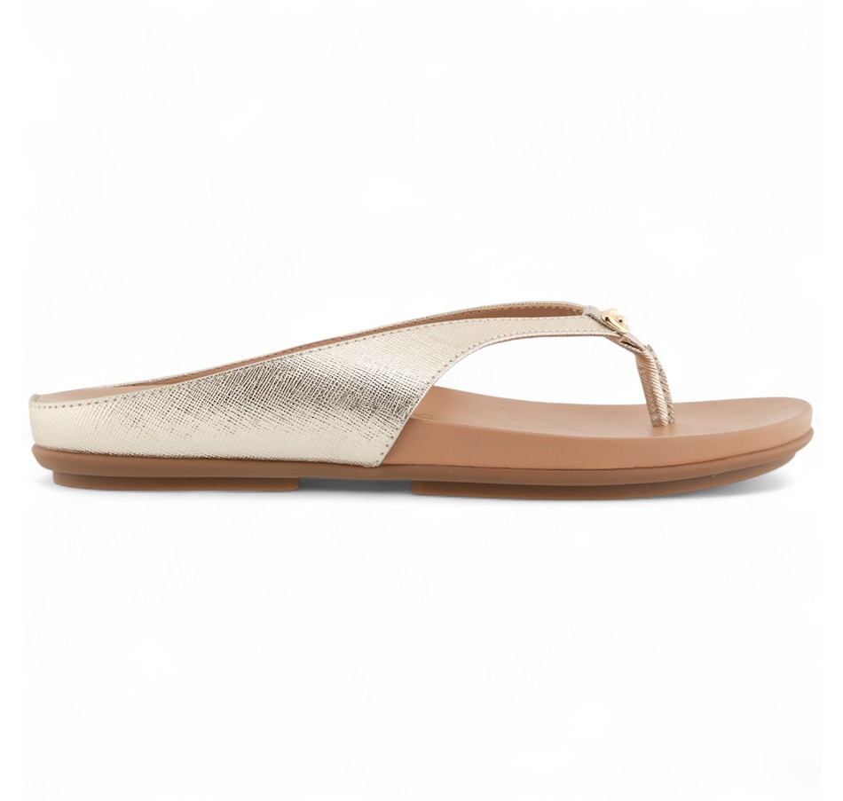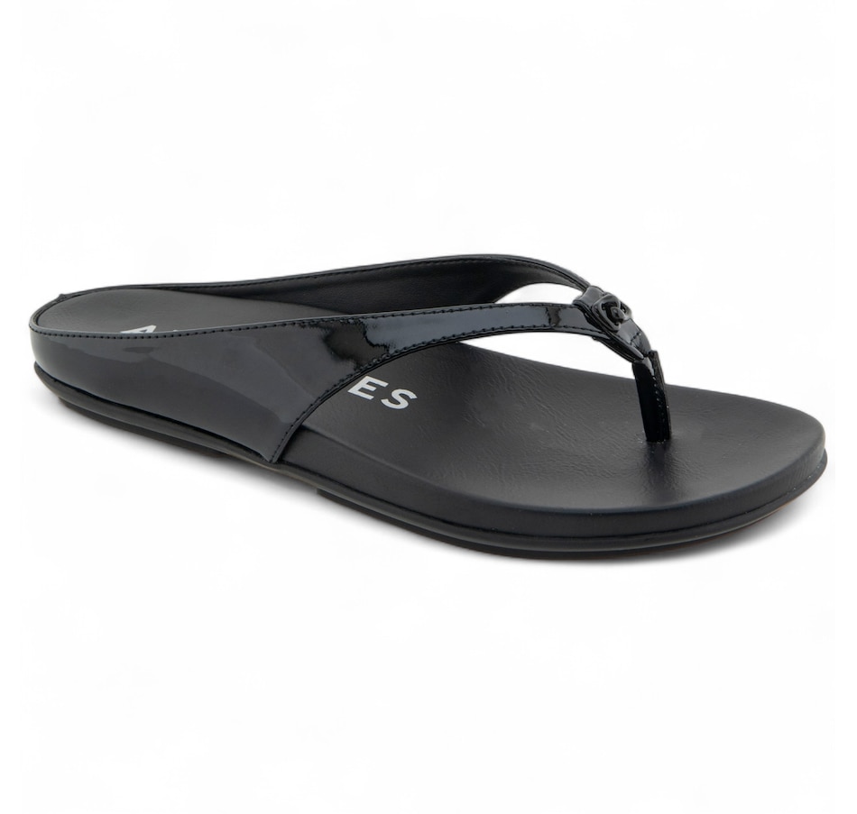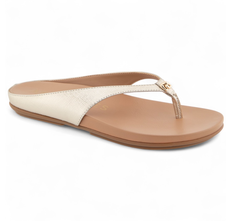 The Fisher flat thong sandal offers effortless sophistication with its slip-on design and Diamond Flex outsole for enhanced traction. This step-in toe thong sandal also features bit hardware detail.