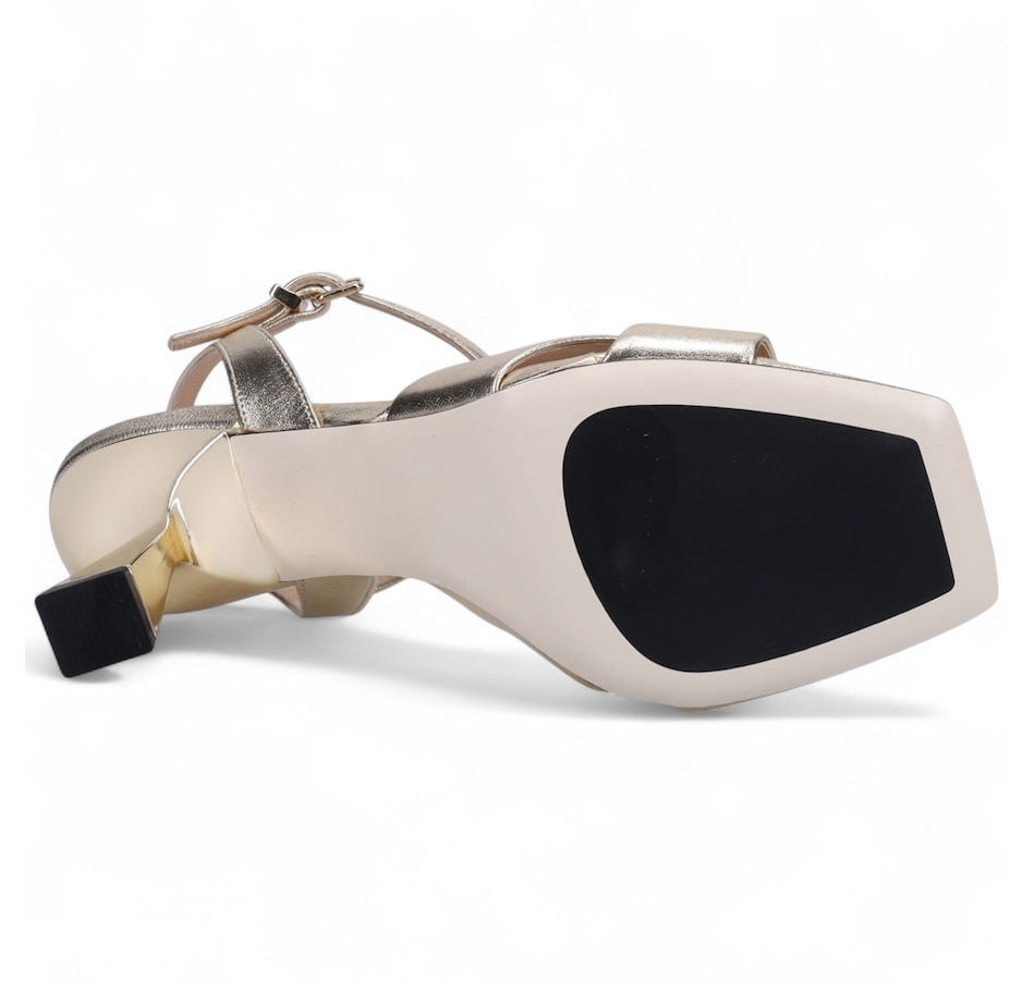 Ainsley Sandal in Buttery Nappa or Metallic Nappa. Ankle strap with adjustable buckle. Double padding. Made in Italy.