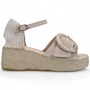 Juno Espadrille Sandal in Suede with Jute Wrapped Platform. Ankle strap with adjustable buckle. Antibacterial microfibre lining. Made in Italy.