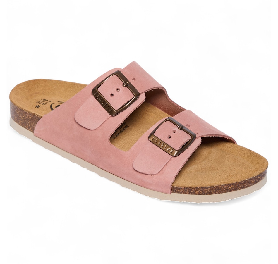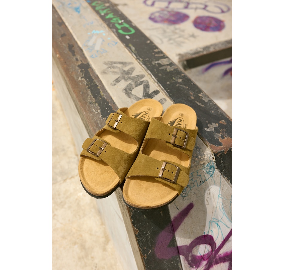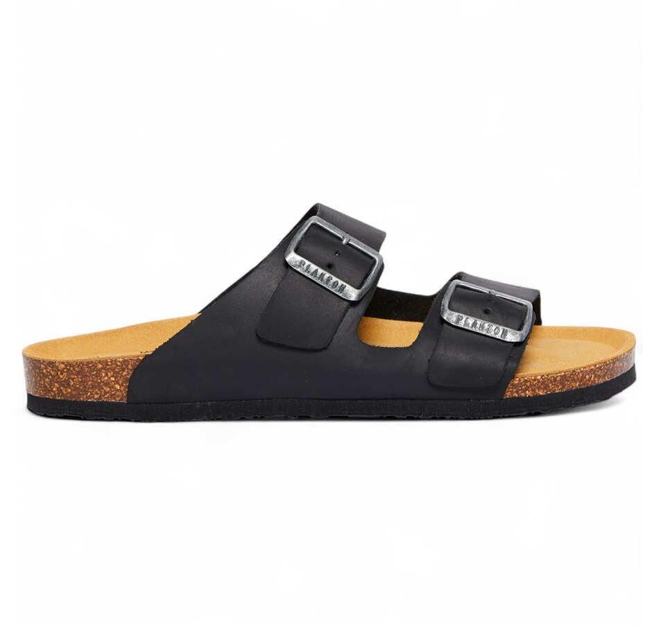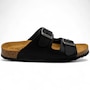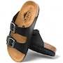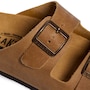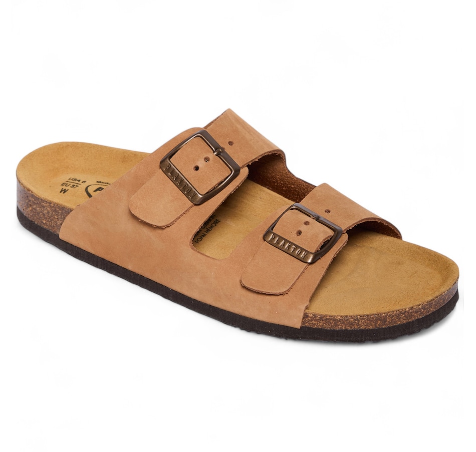 Whether you're strolling through the city or relaxing at home, this classic leather sandal delivers both sophistication and comfort. It is made with a dual strap design with adjustable buckle detail and an easy step-in style.