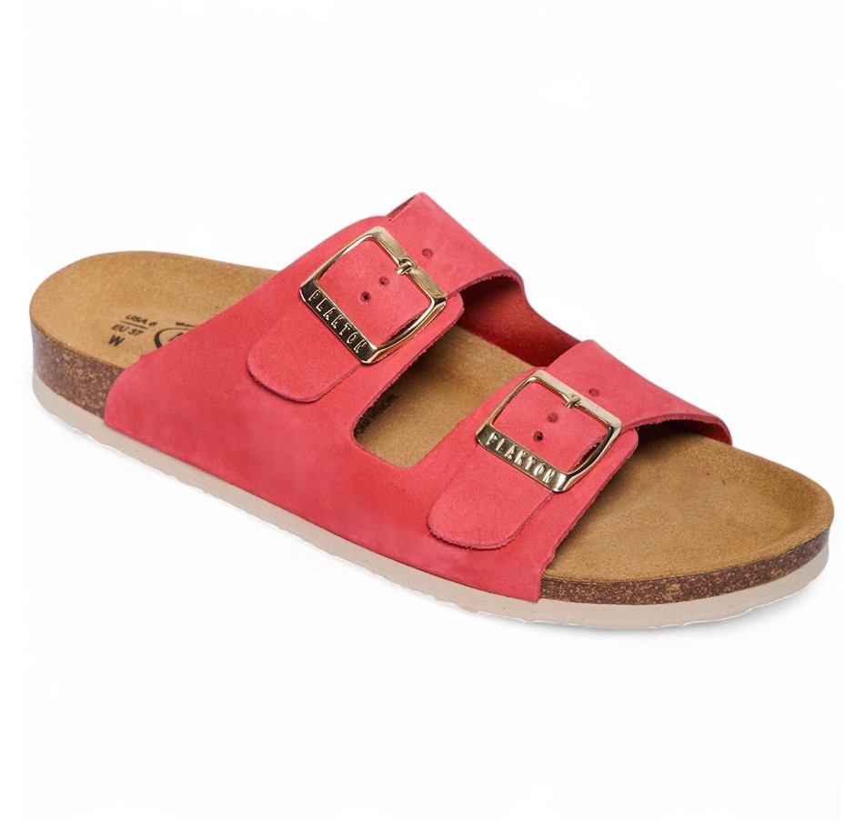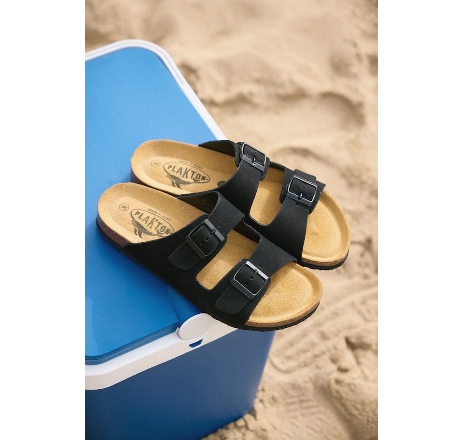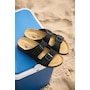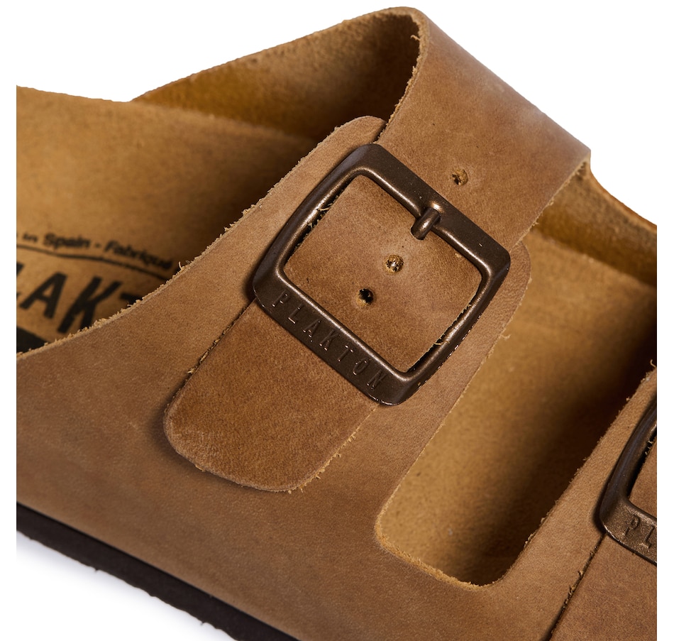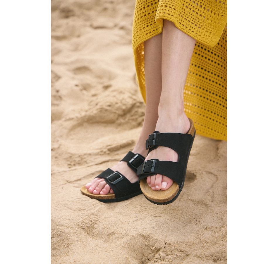 Whether you're strolling through the city or relaxing at home, this classic leather sandal delivers both sophistication and comfort. It is made with a dual strap design with adjustable buckle detail and an easy step-in style.