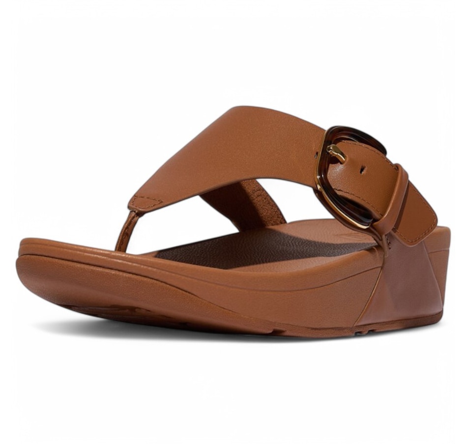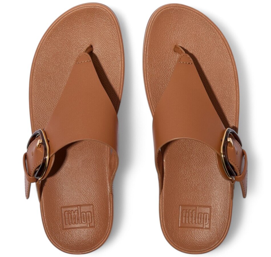 This bestselling Lulu sandal boasts a timeless triangular vamp, softly padded uppers, and a soft leather toe post. The Microwobbleboard midsoles deliver unbeatable cushioning and comfort throughout your day. This season it is crafted in smooth leather with an adjustable statement buckle, featuring a glossy white resin inlay, in a shiny 'antique-gold' casing. This chic sandal has refined detail that will elevate almost any daytime look.