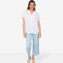 This blouse is made with a sustainable polyester fibre created from 100% post-consumer plastic waste, resulting in less water, energy use and fewer greenhouse gas emissions without changing the look and feel of the fabric. It is crafted from lightweight georgette in a loose silhouette that feels casual yet polished. This collared pullover style is a true wardrobe essential with fine tailored details and clean-finished with a curved hem. It finishes with a split neckline and short dolman sleeves.